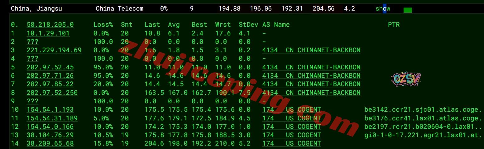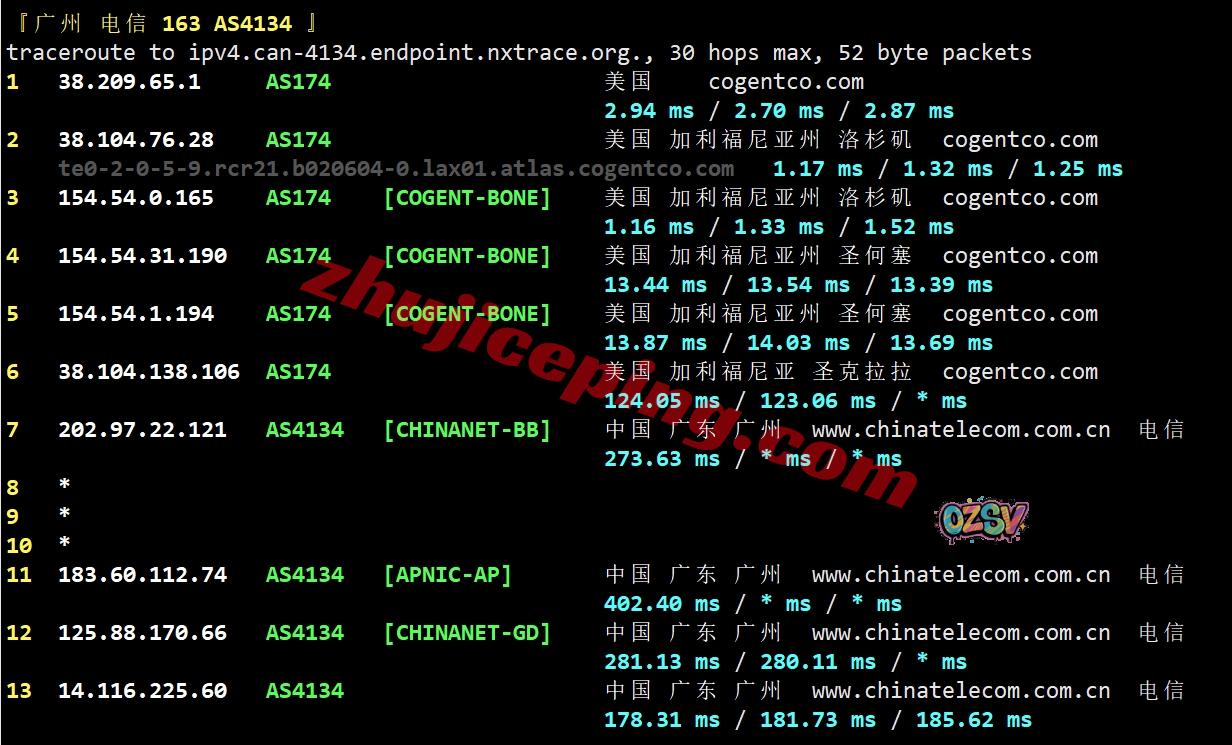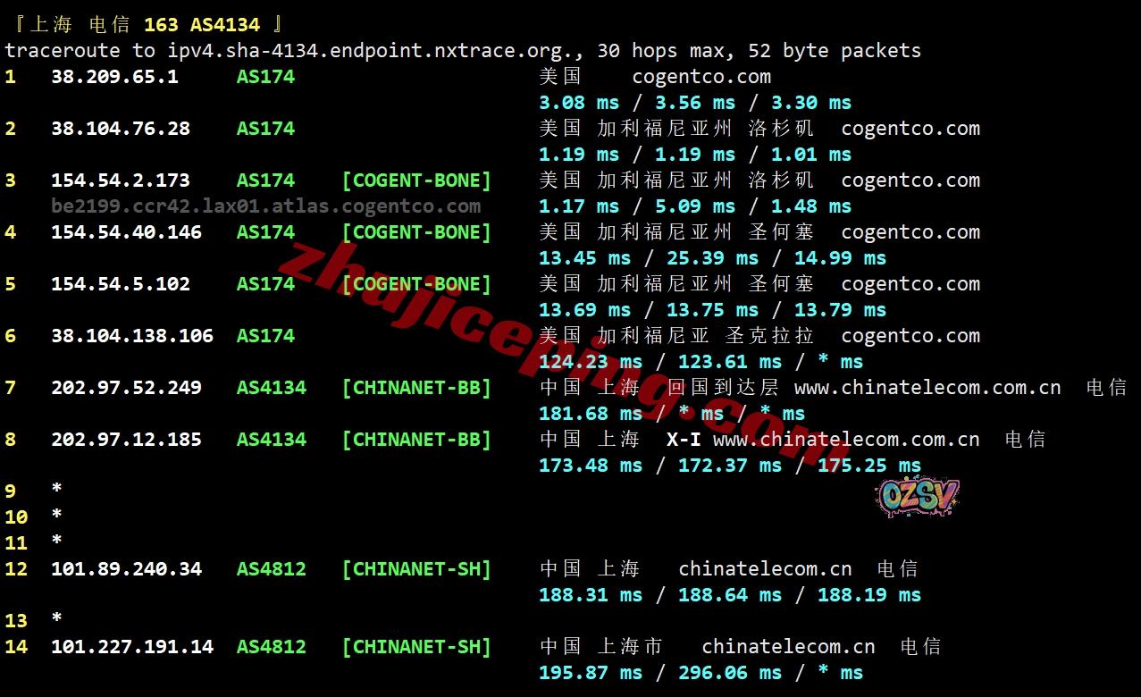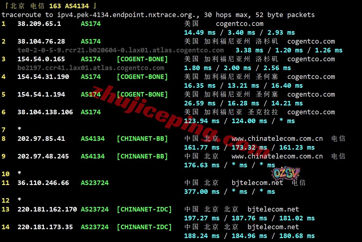 电信回程:走cogent经过圣何塞、圣克拉拉出海回中国