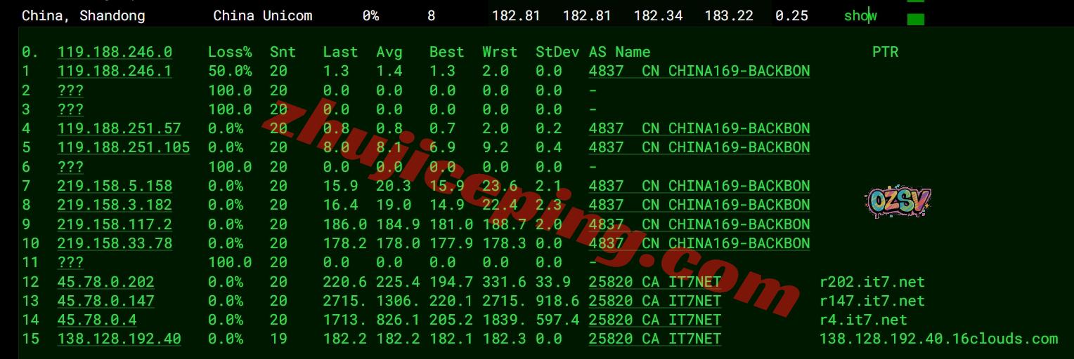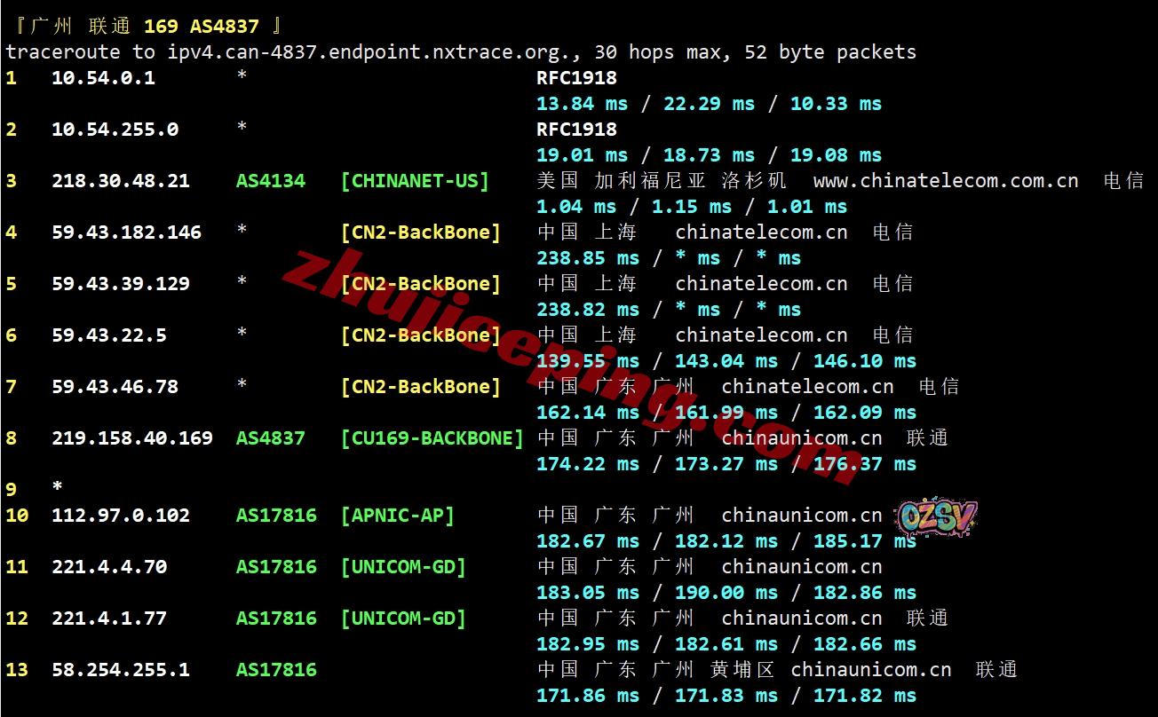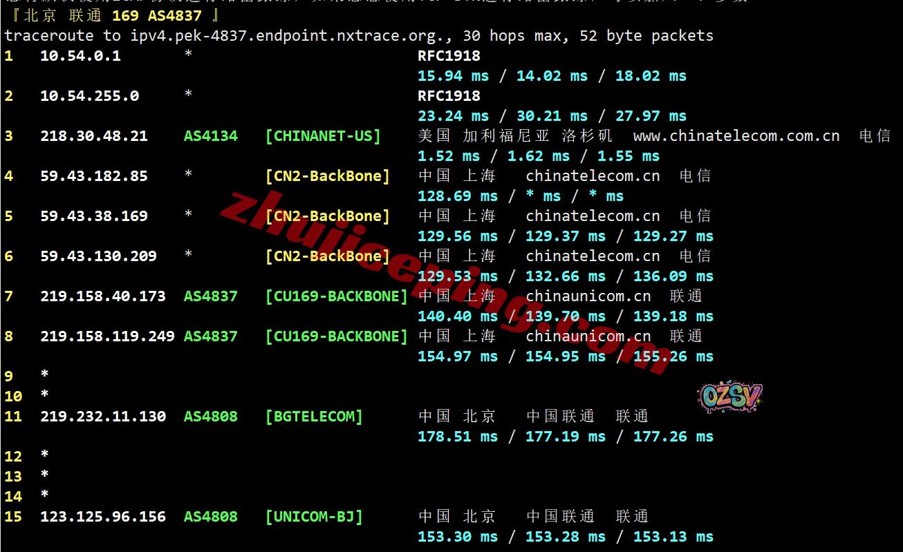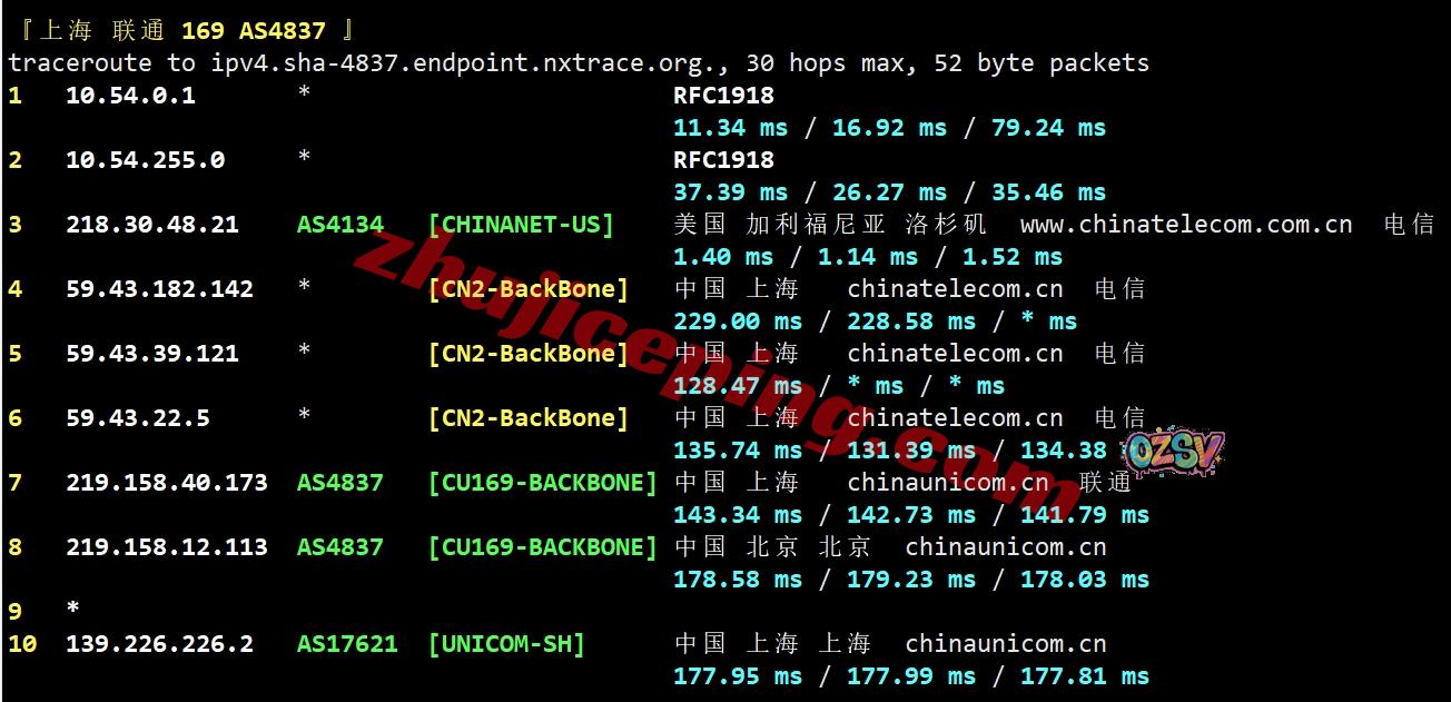 联通回程:强制走电信CN2高端链路由洛杉矶出海直连回国