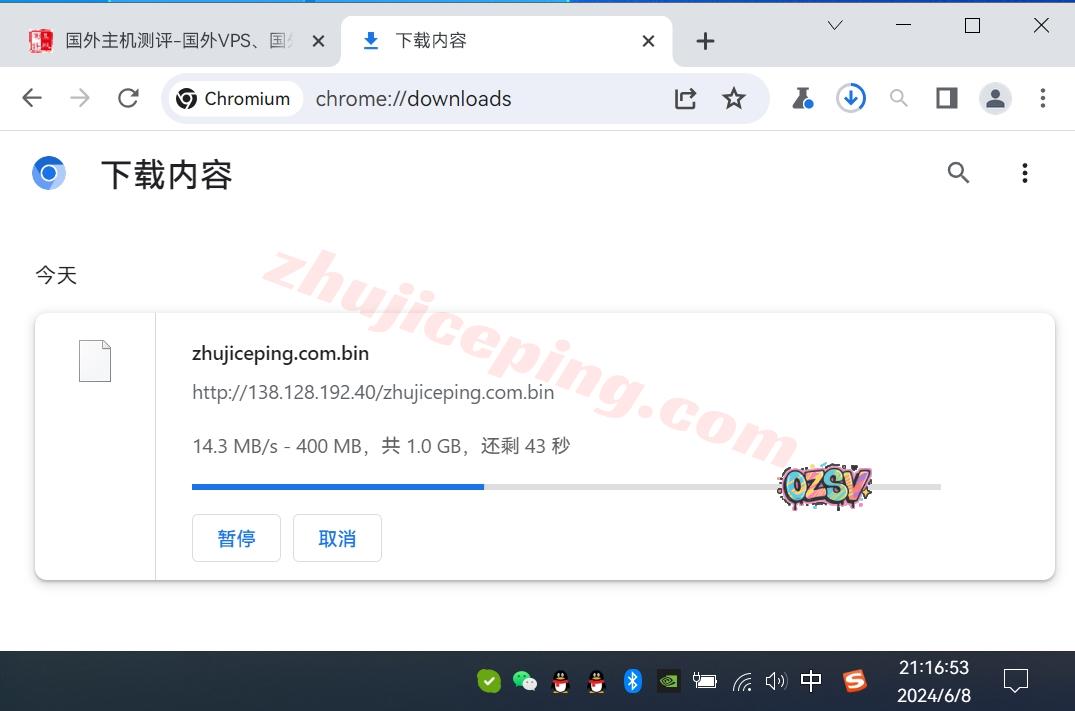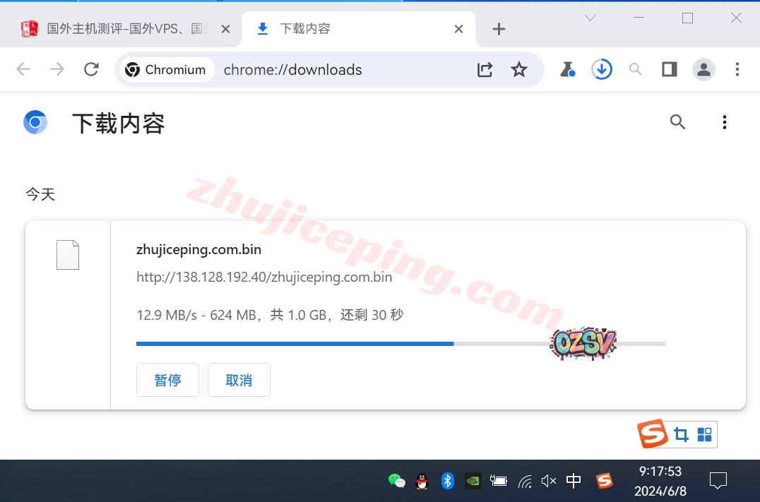存放在测试vps上的文件,广州联通家宽,直接用浏览器下载,大致数据如下: