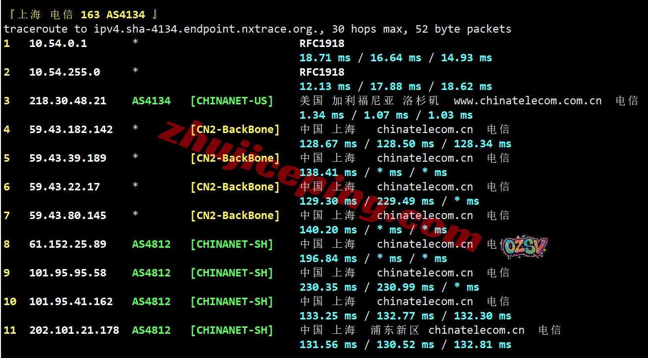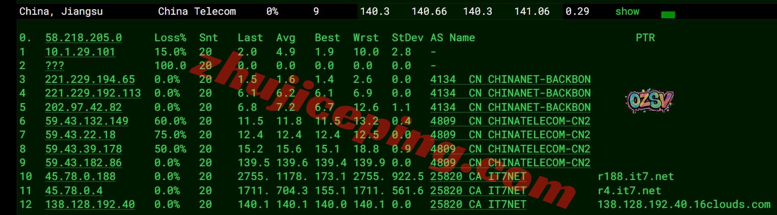 电信回程:走电信CN2高端链路由洛杉矶出海直连回国