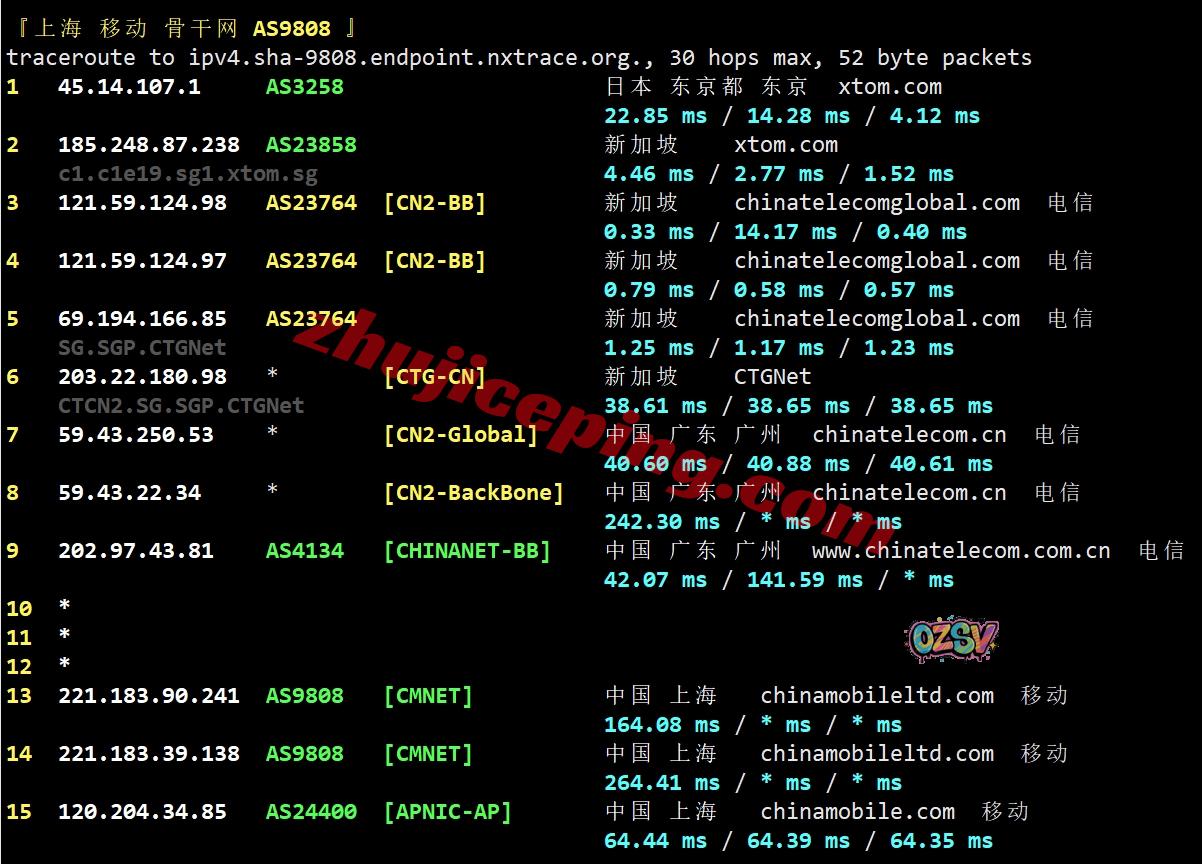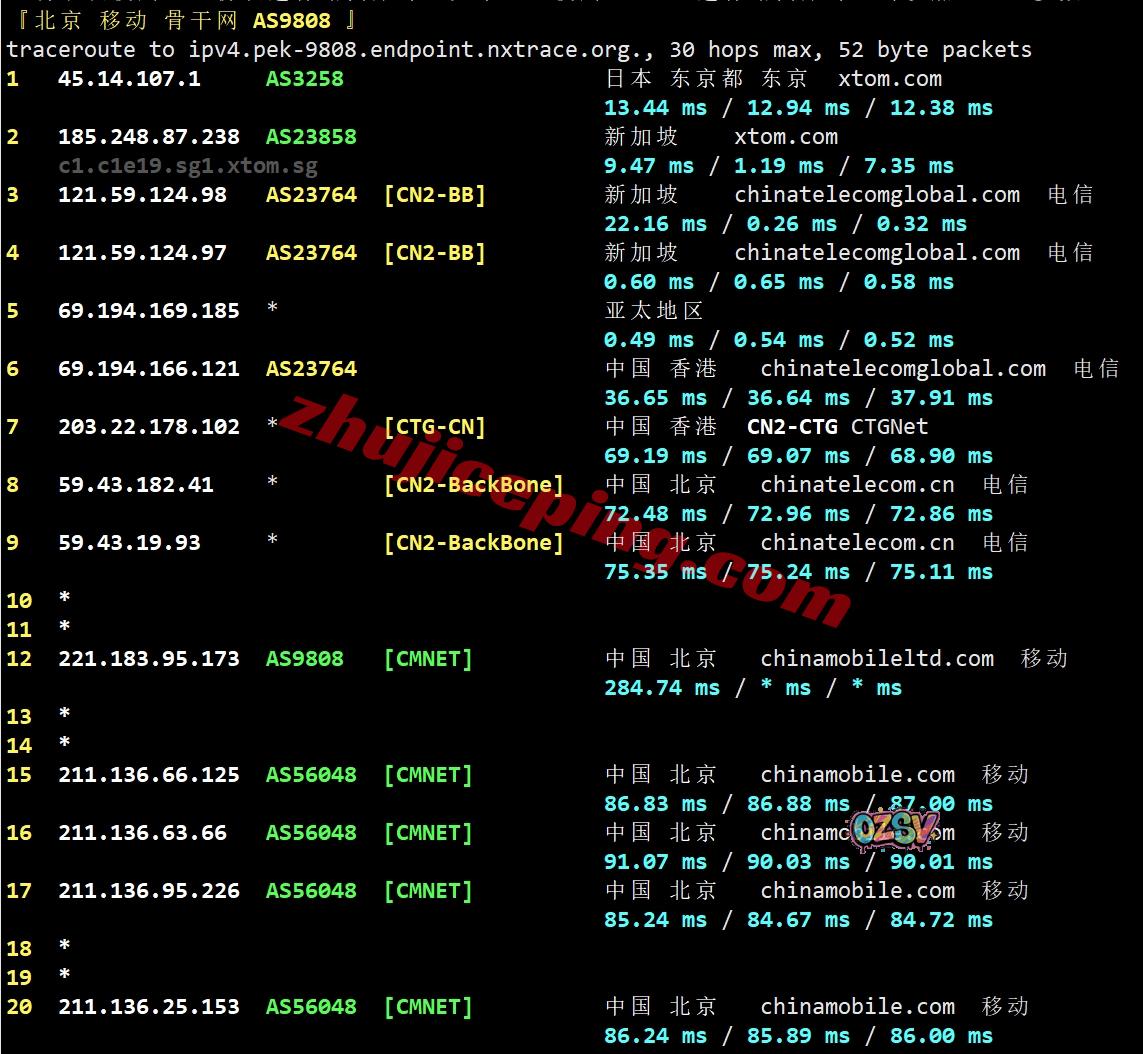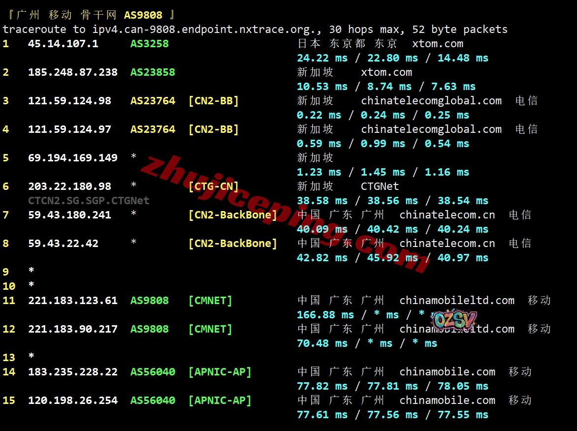 移动回程:走电信CTG接CN2直接回国,在国内再转移动