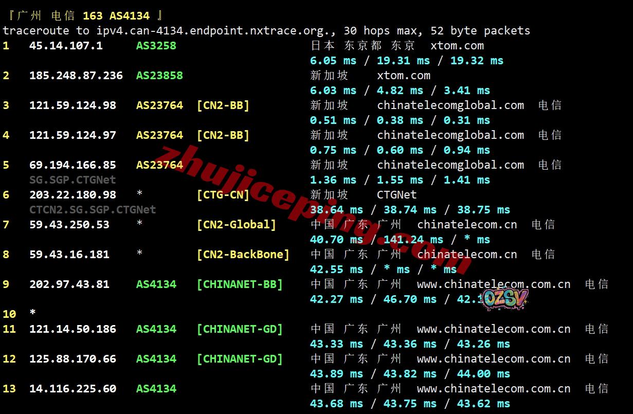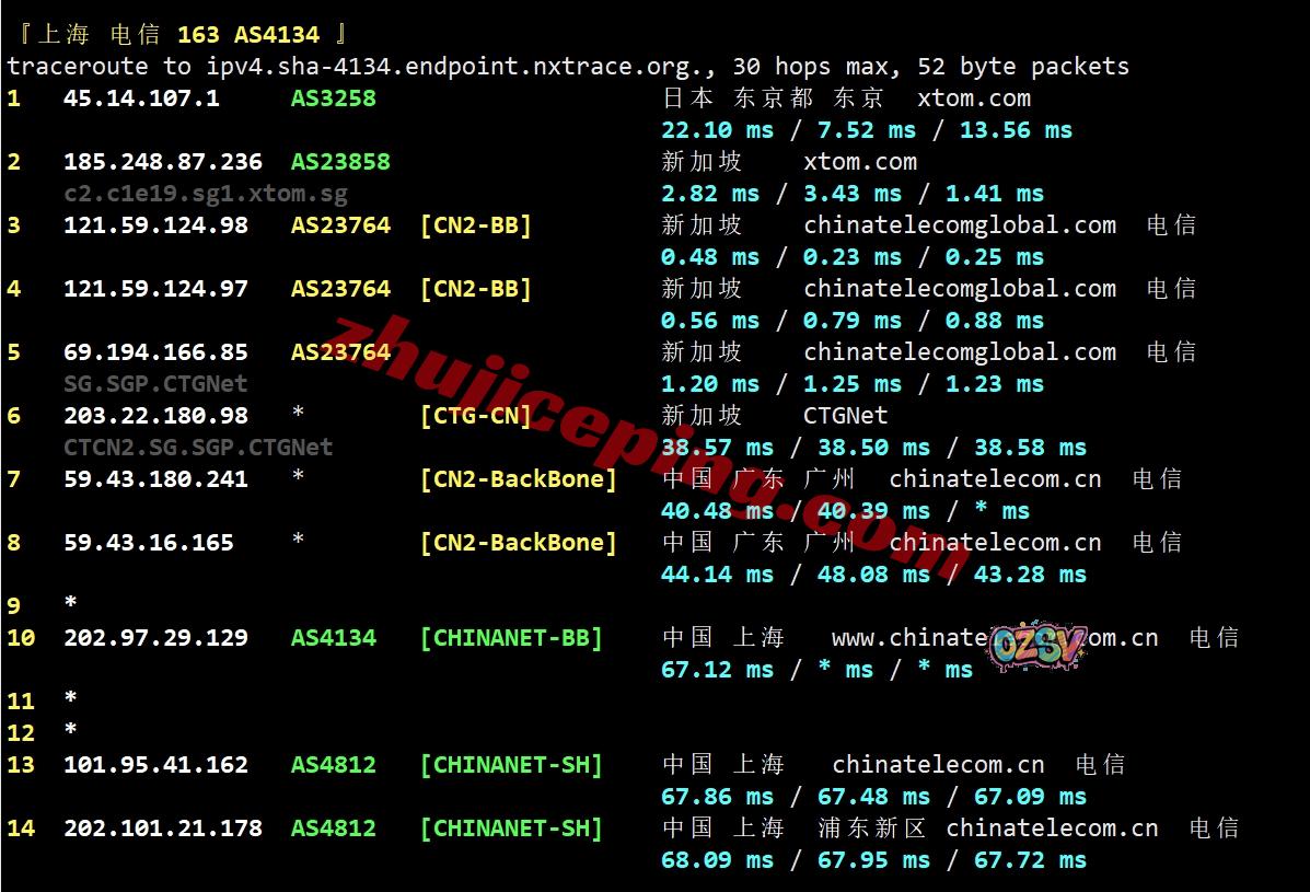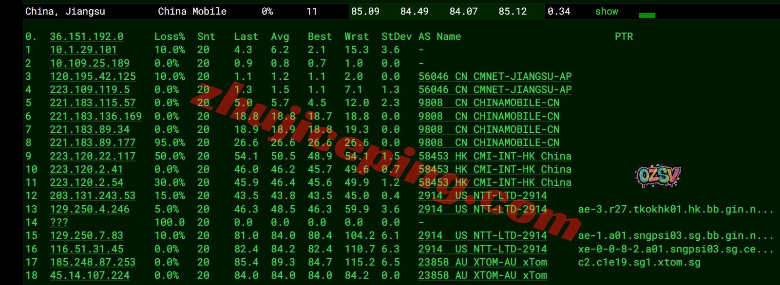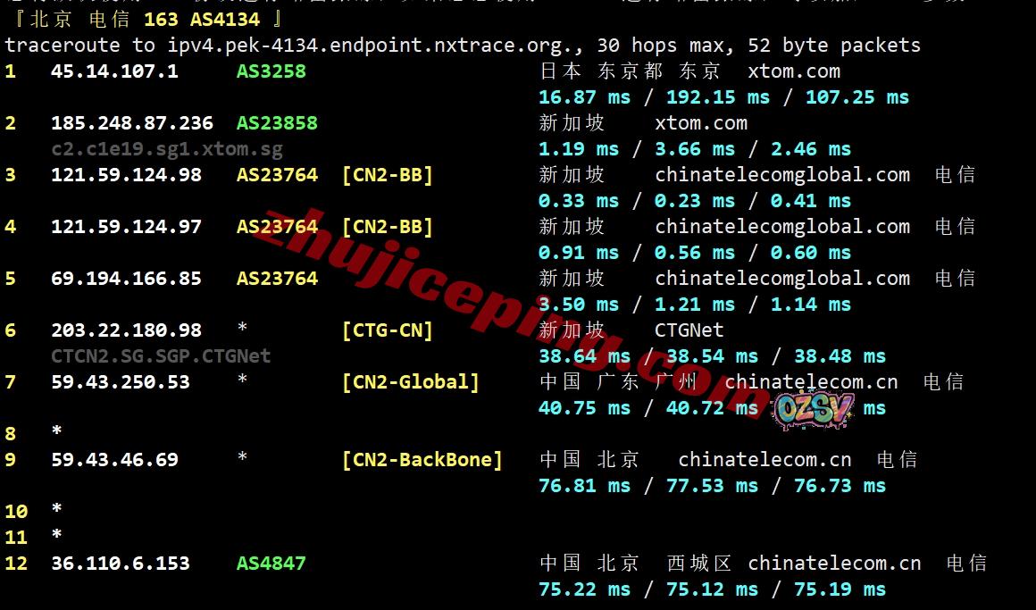 网络方面,去程:电信走CN2、联通走NTT先去日本再去新加坡、移动CMI对接NTT从香港去新加坡,