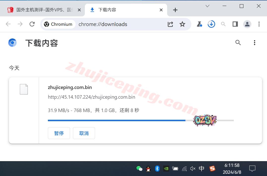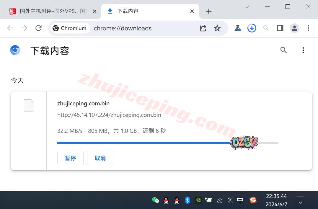 存放在测试VPS上的文件,广州联通家宽用浏览器下载文件,大致速度如下: