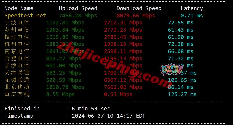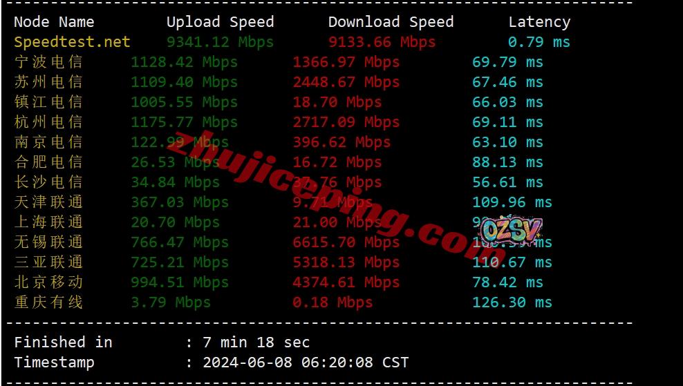 国内三网多节点的延迟测试数据: