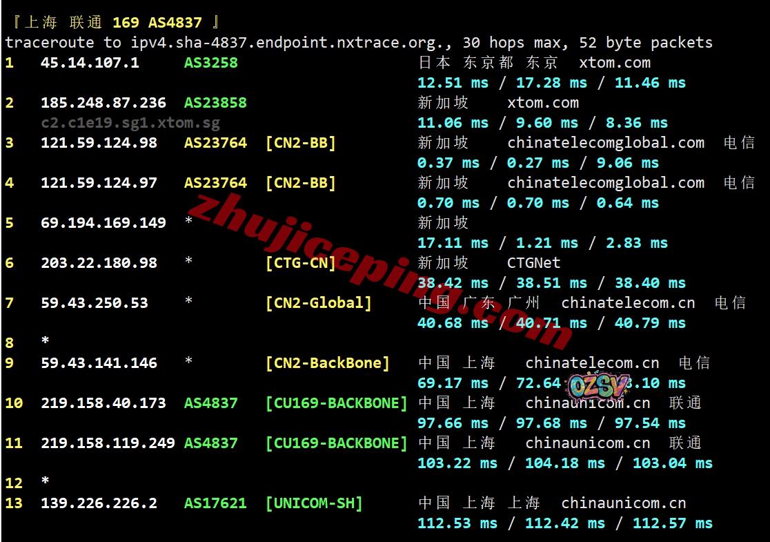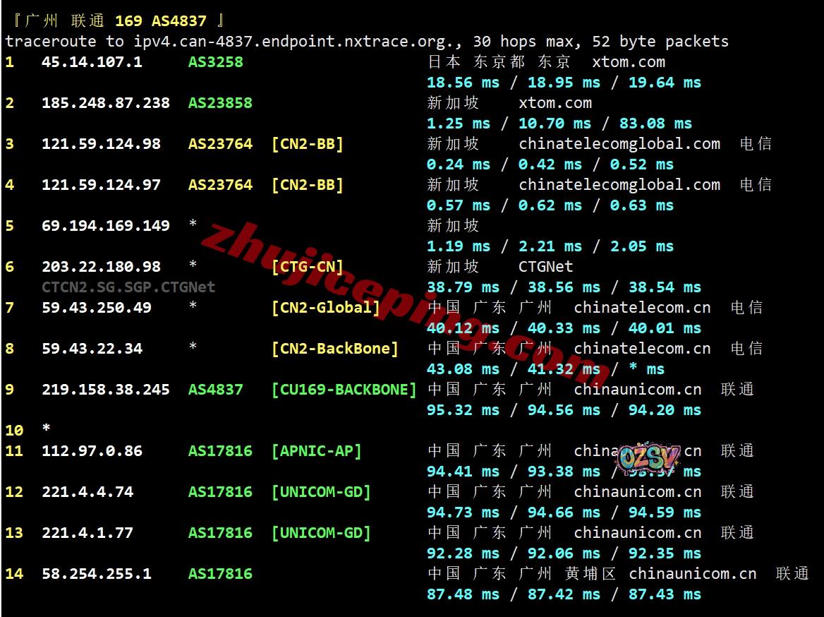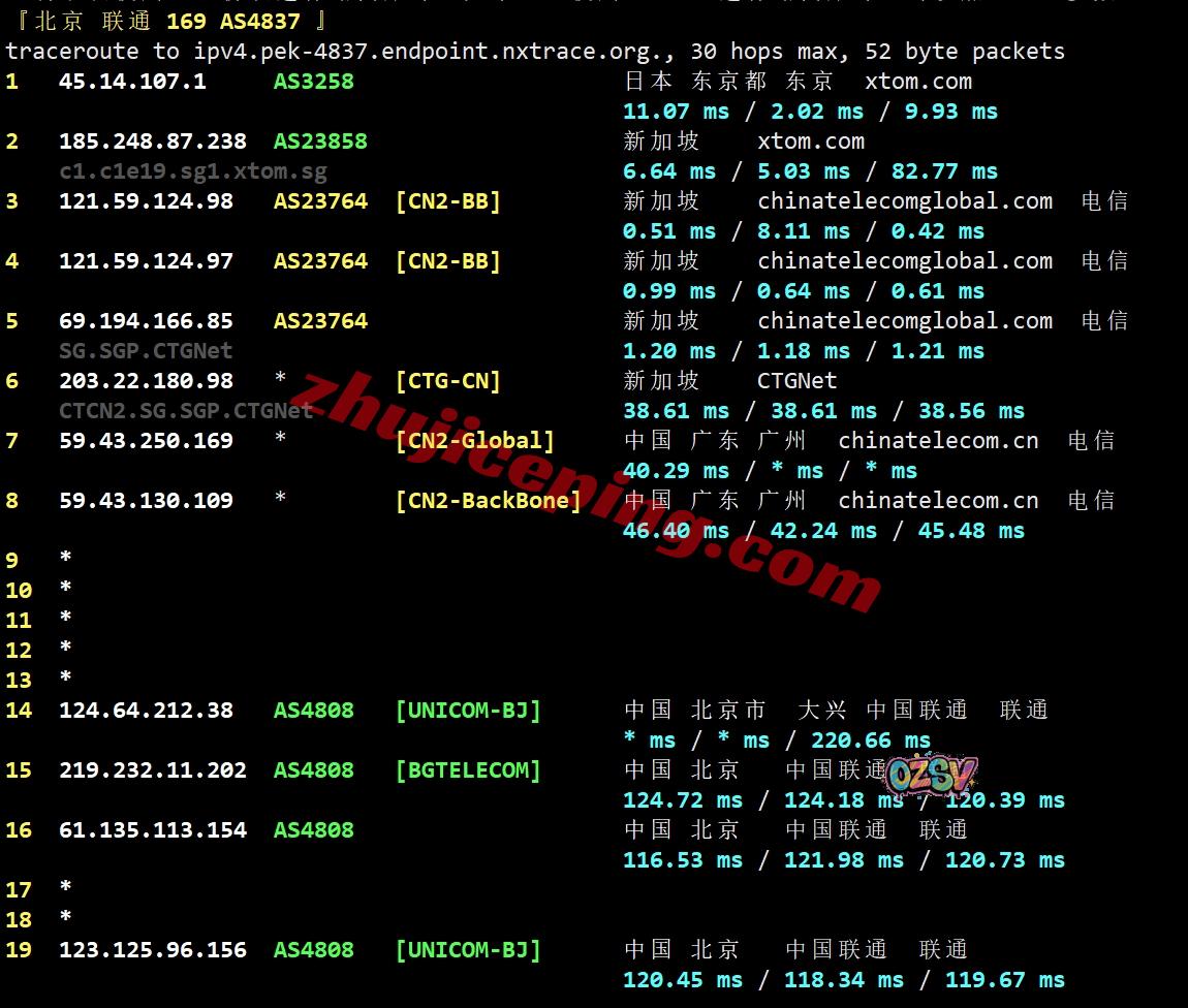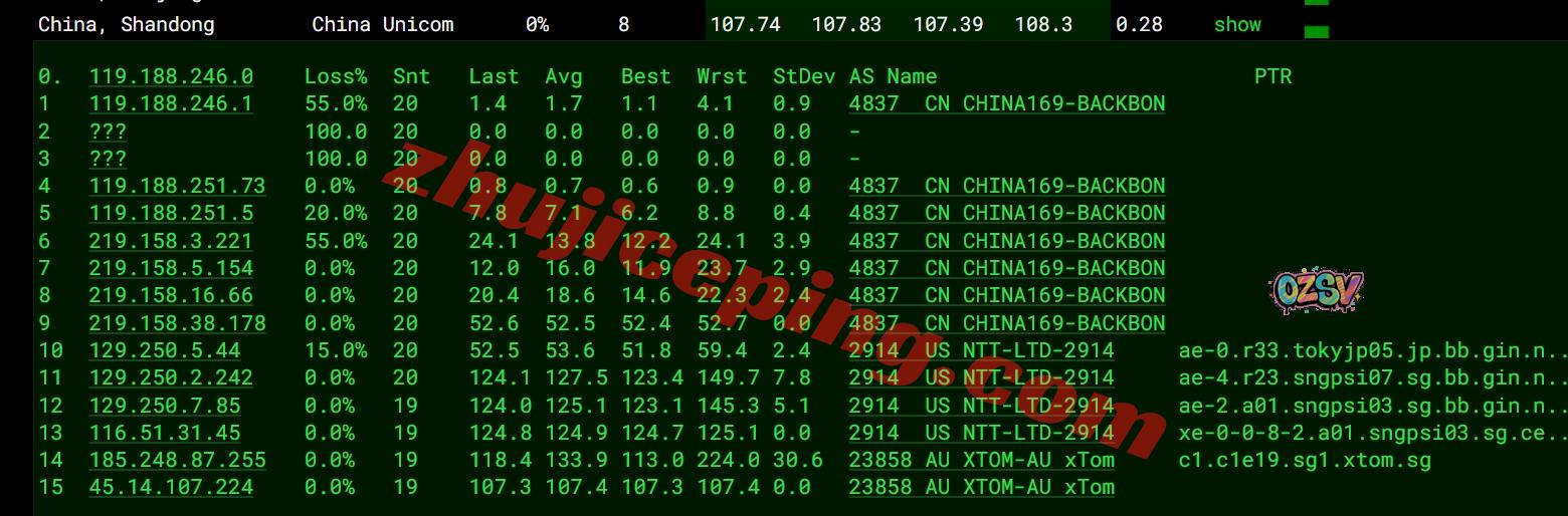 联通去程:骨干网对接NTT先去了日本然后再去新加坡