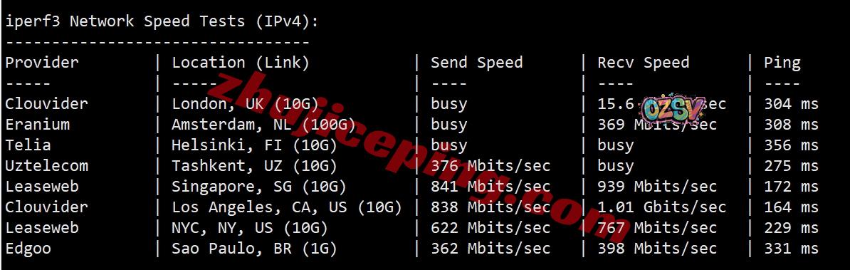 iperf3,几个热门国际节点的测试数据: