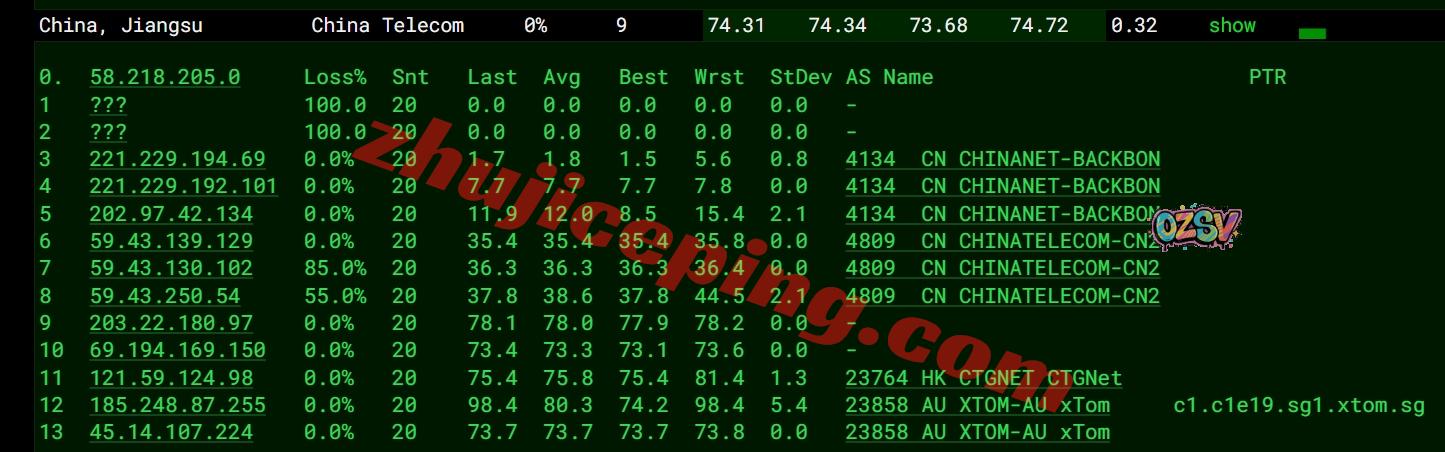 回程,三网强制走CTG接CN2直接回国。整体来说网络是相当不错的,而且性能也相当给力,也就是说网速与性能都给力。