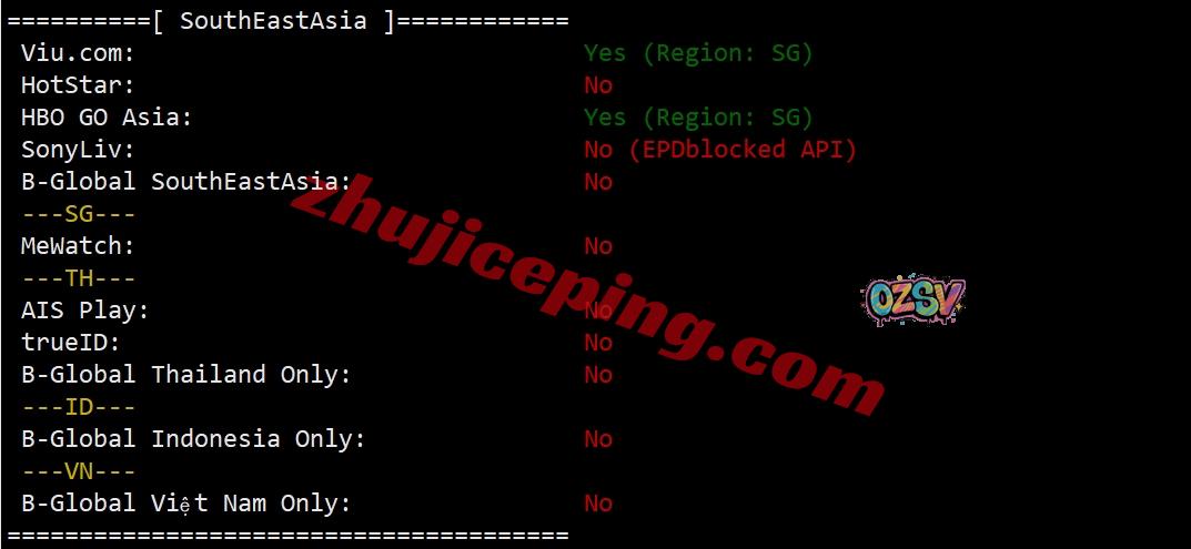 部分东南亚流媒体解锁测试: