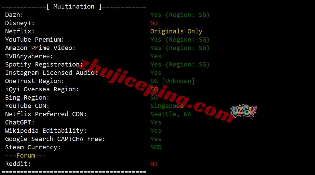 部分跨区域流媒体解锁测试:
