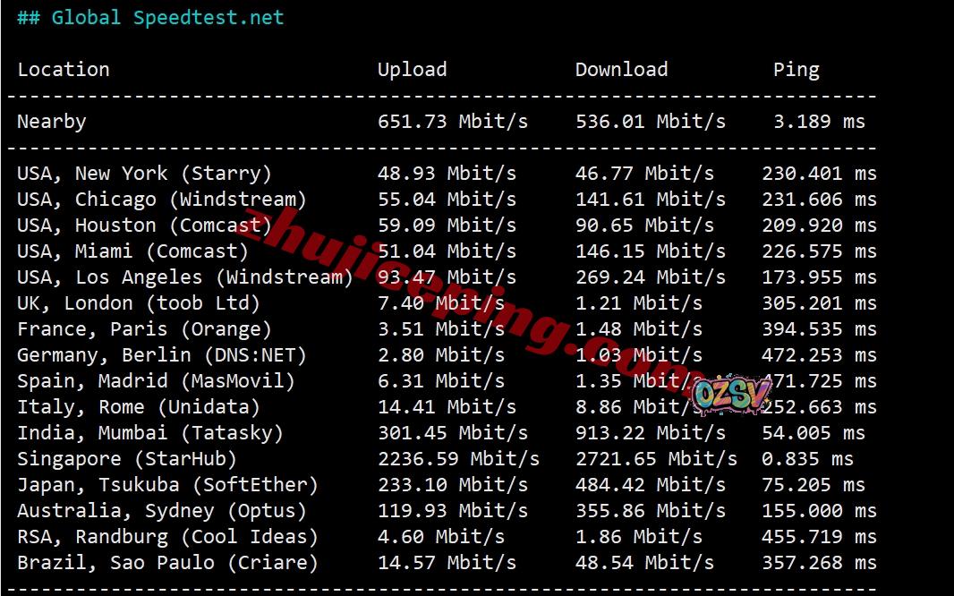 speedtest.net 的部分国际节点的测试数据: