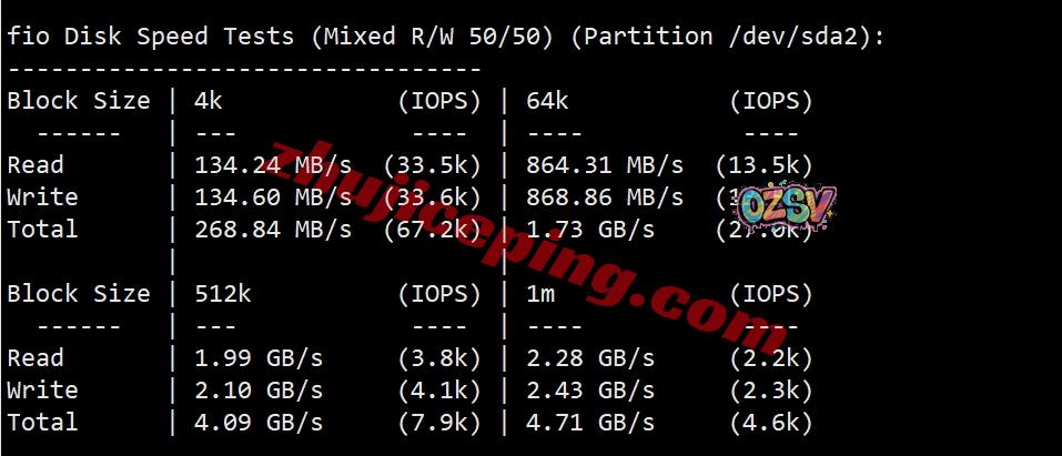 FIO进行数据读写,大致测试数据如下: