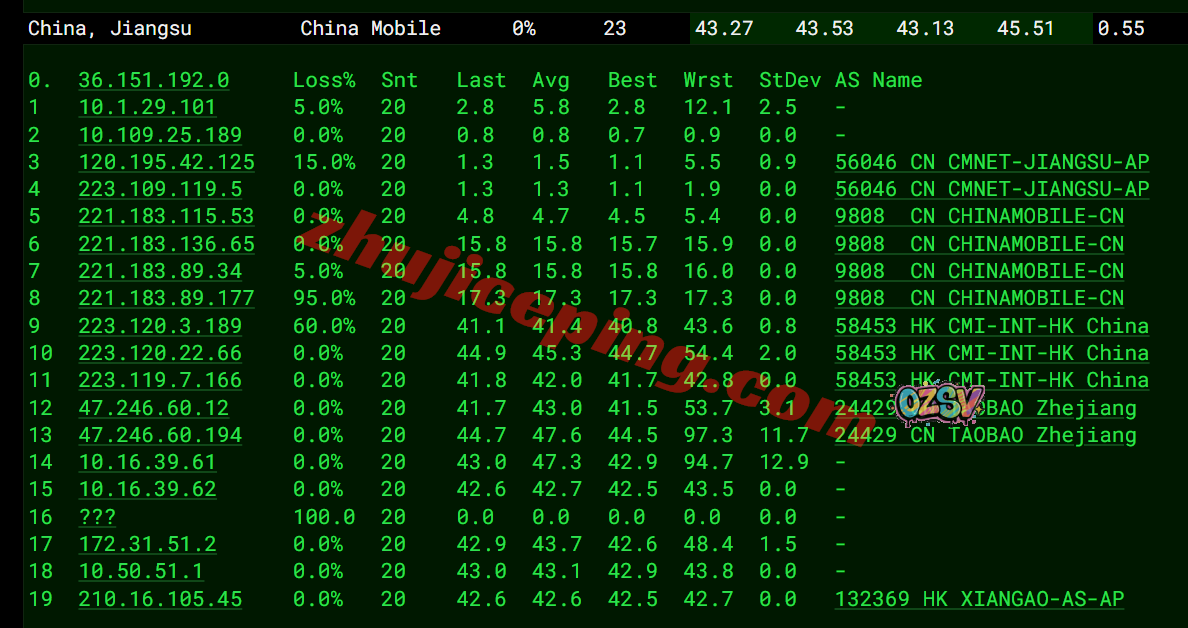 境内三网多节点的延迟测试数据:
