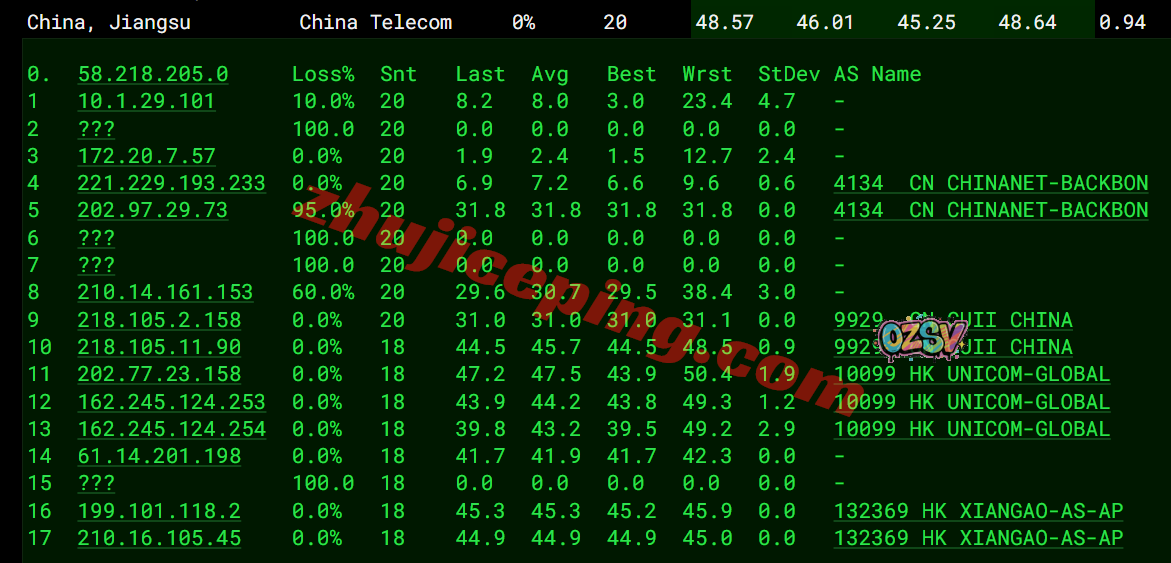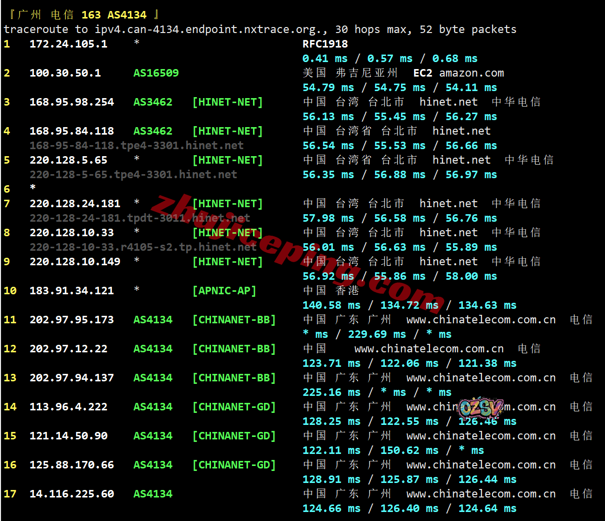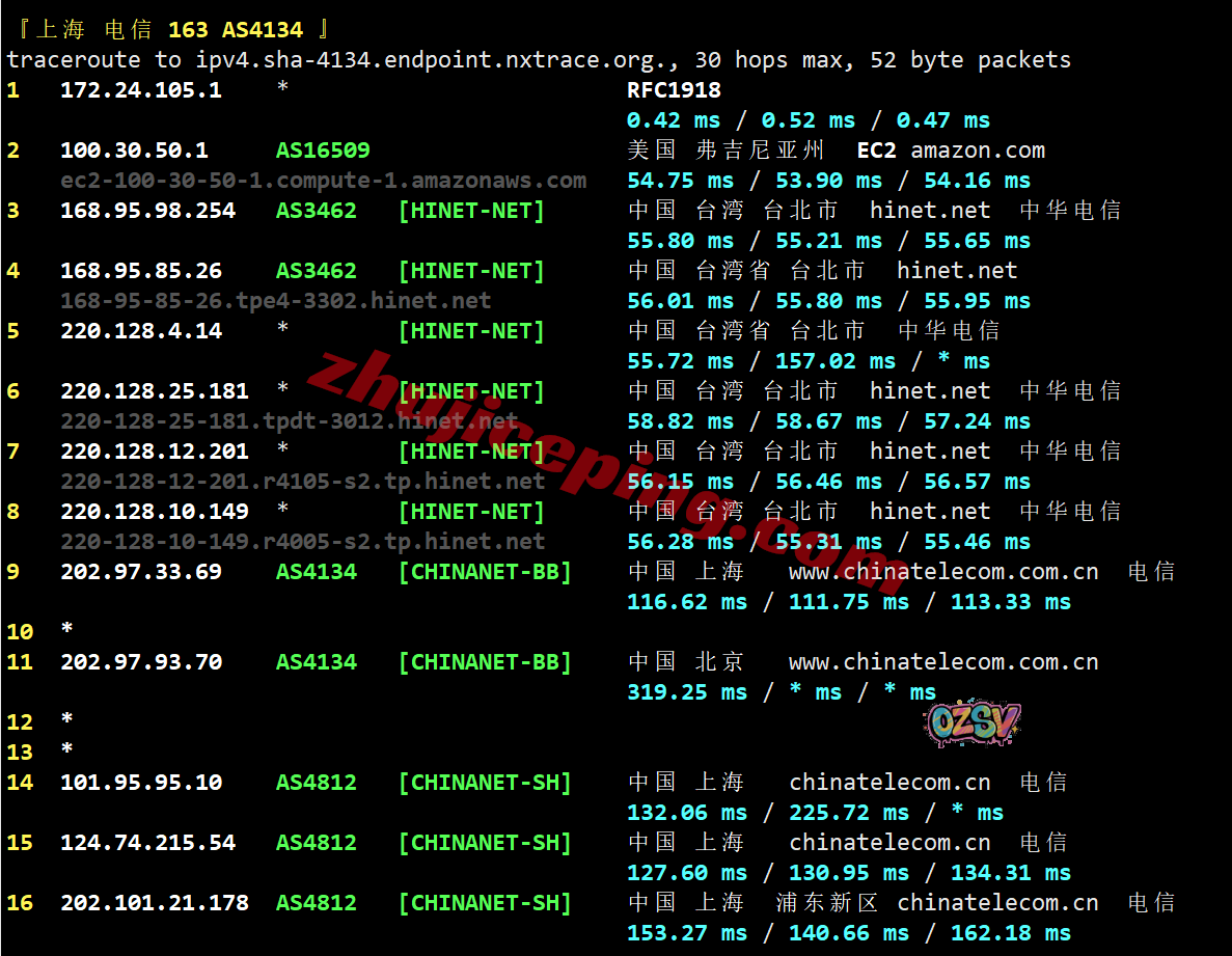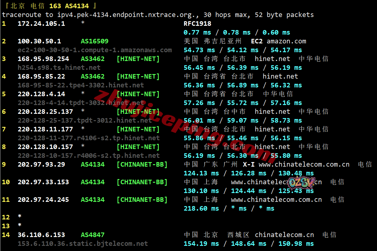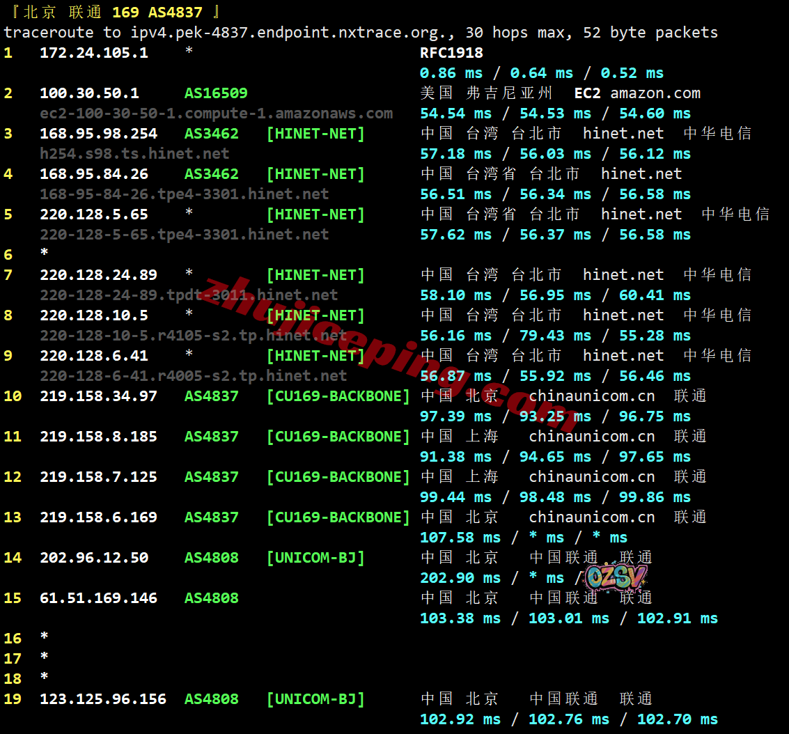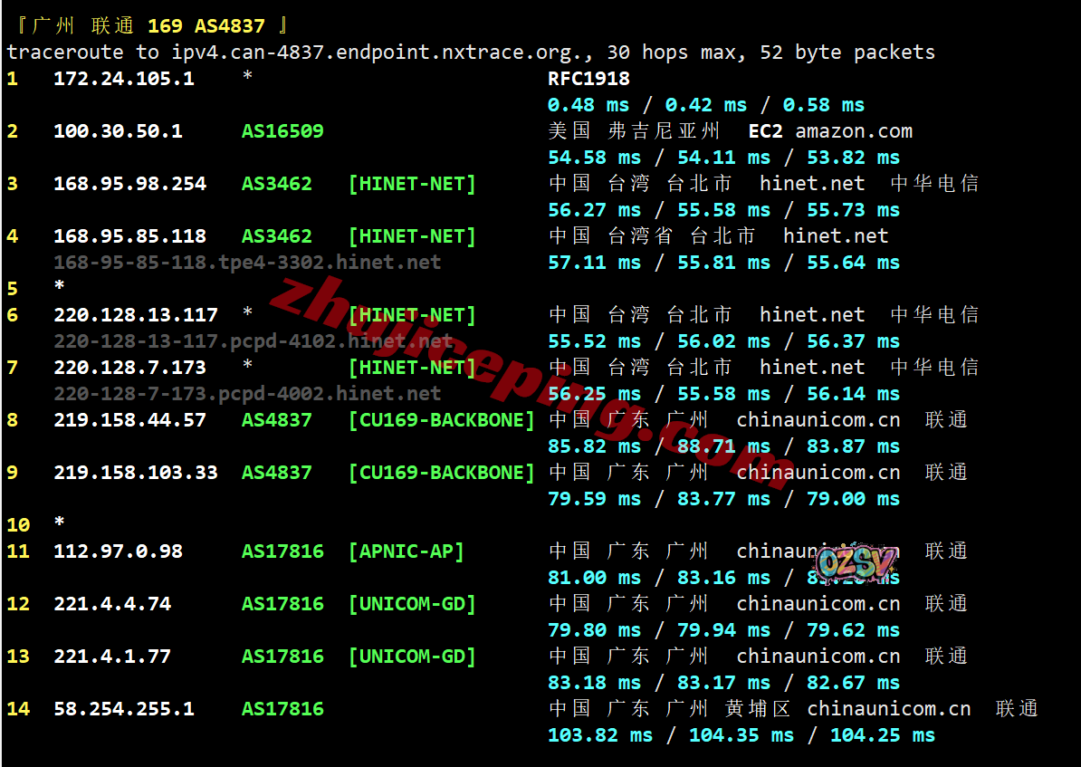 电信去程:骨干网转联通AS9929从香港去台湾