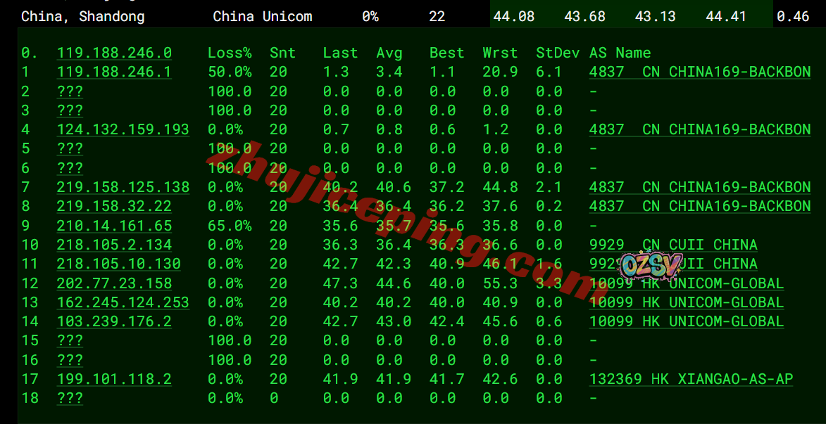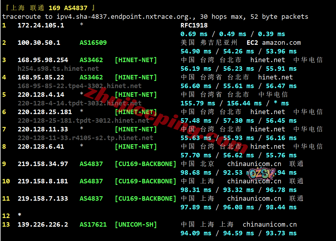 联通回程:依旧还是hinet直接连大陆