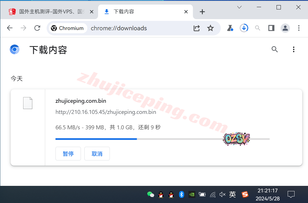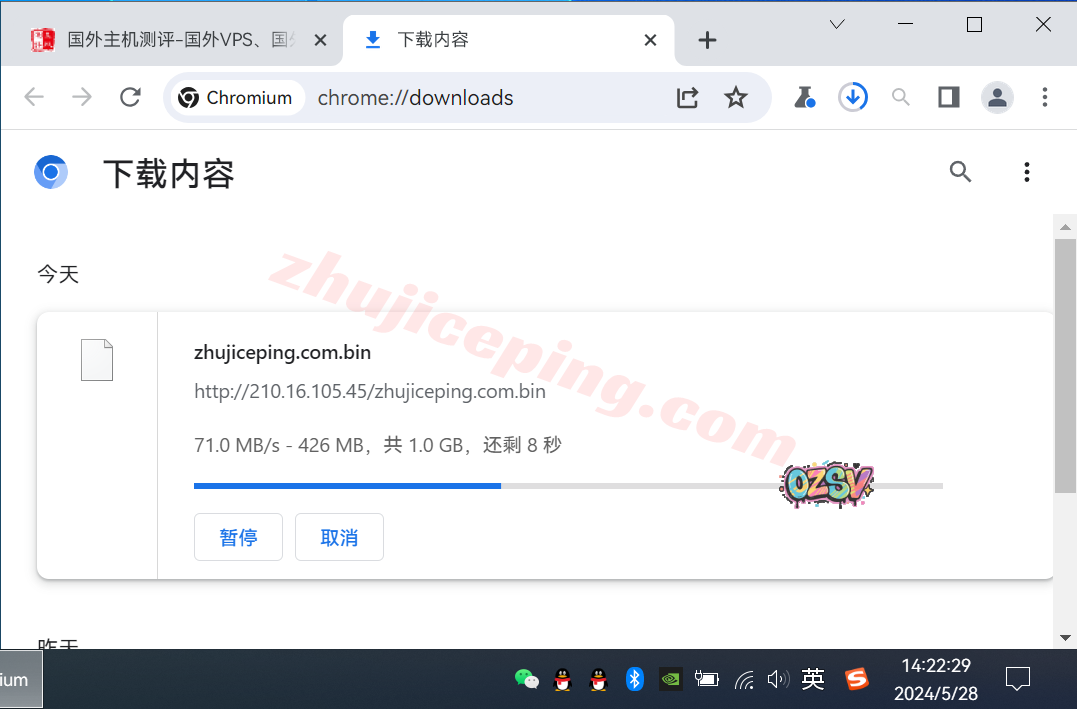 存放在测试VPS上的文件,广州联通家宽直接用浏览器下载,大致速度: