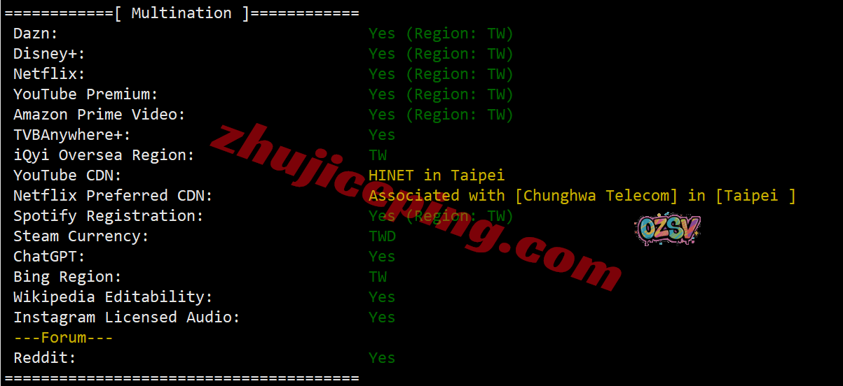 部分跨区域流媒体解锁测试,几乎全打通: