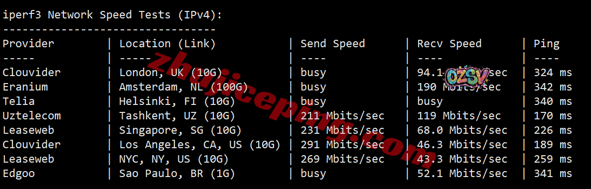 iperf3,部分国际热门节点的测试数据: