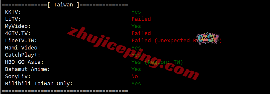 部分台湾流媒体解锁测试: