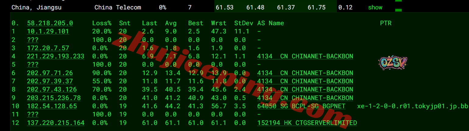 电信回程:走电信CTG/CN2回国