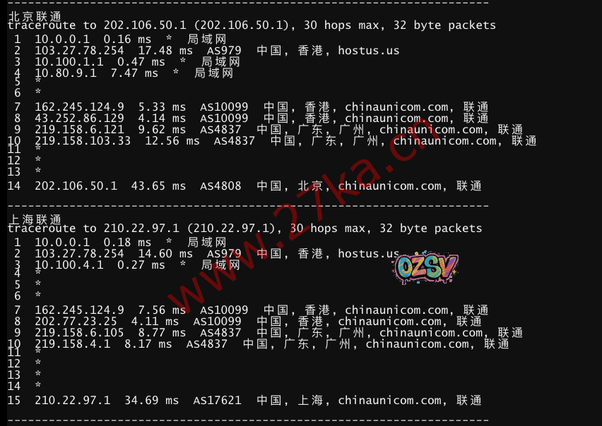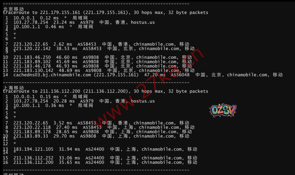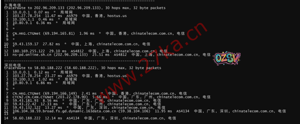 从回程看的话,电信走CN2,移动联通也都是走各自的骨干。
