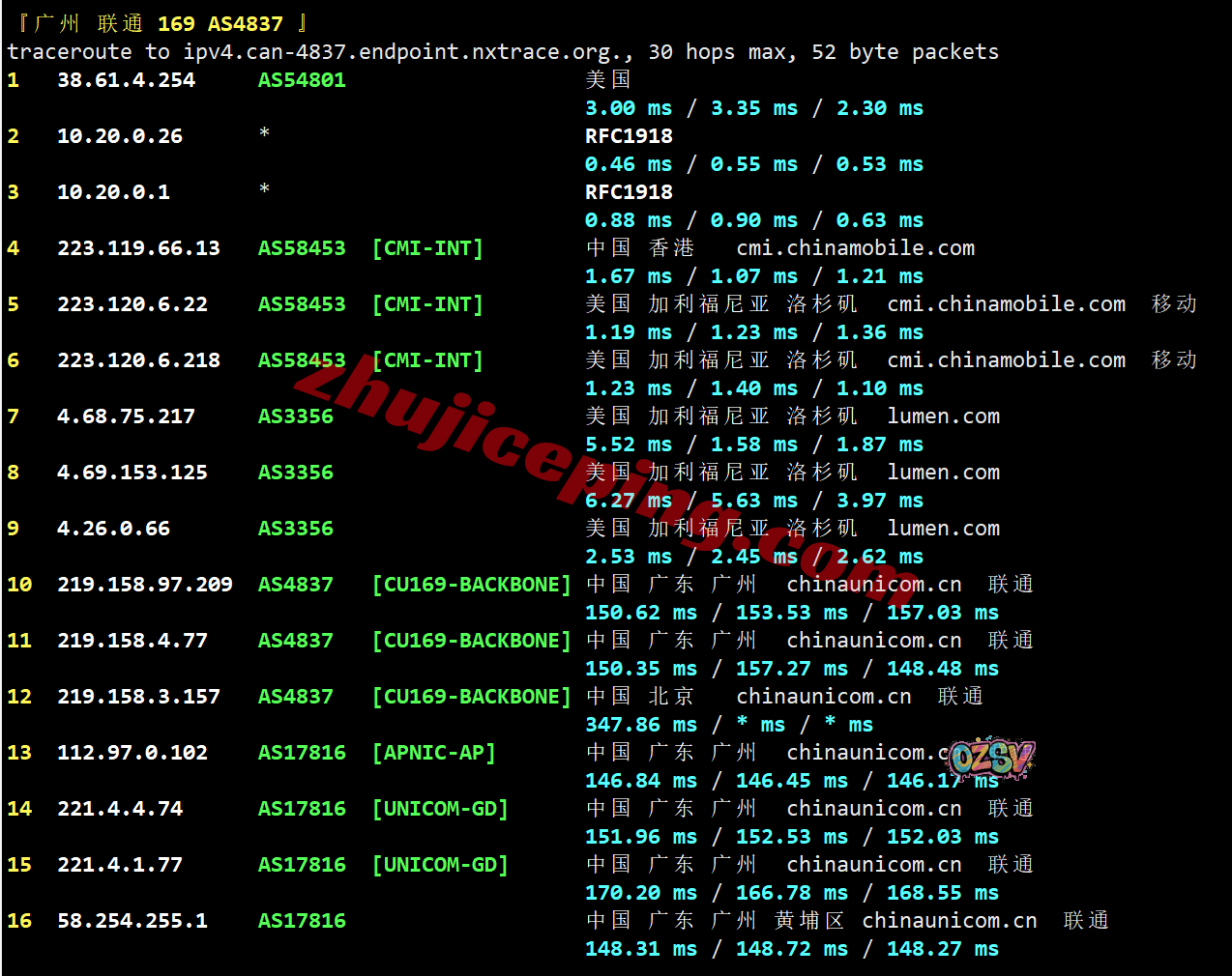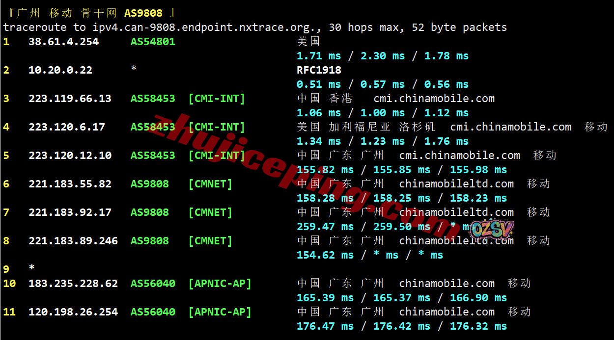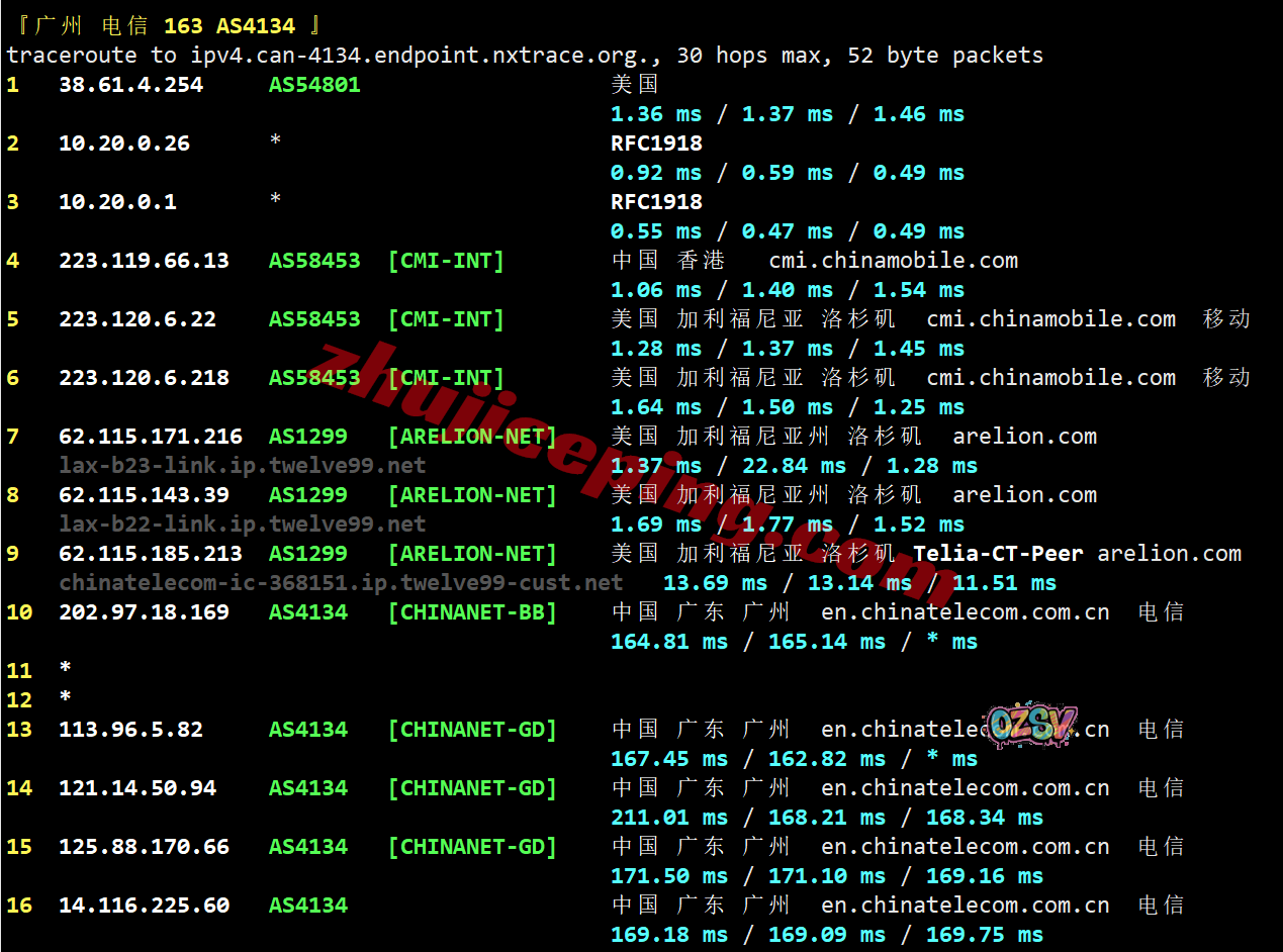 广州方向:从移动洛杉矶节点接lumen之后出海回国