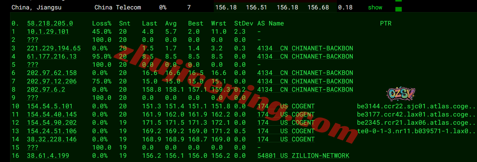 电信去程:直连电信美国圣何塞节点然后走cogent去洛杉矶