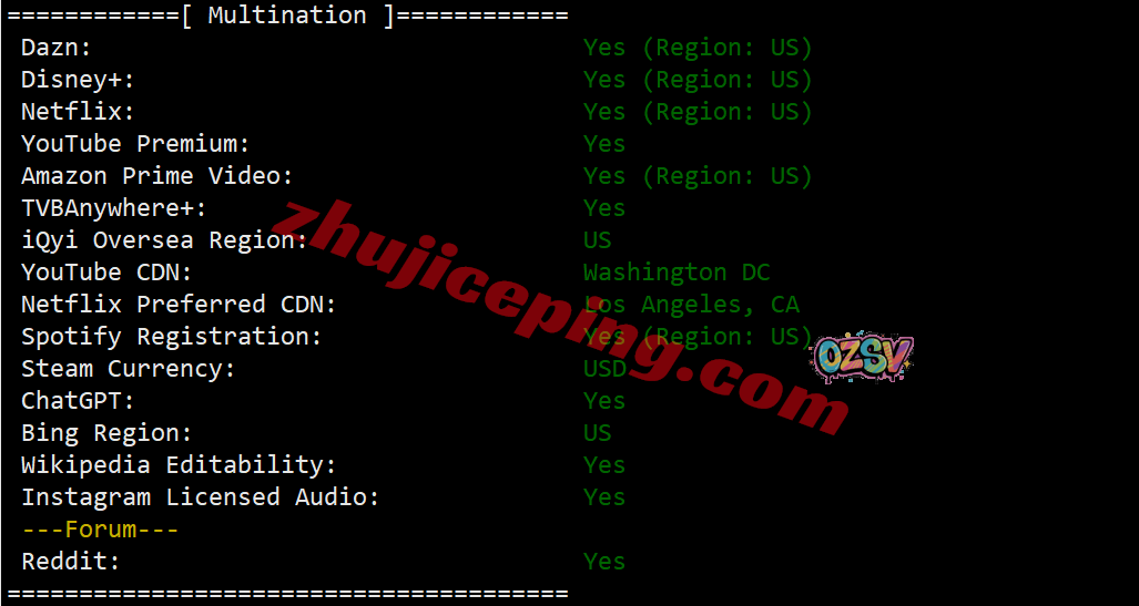部分跨区域的流媒体解锁测试: