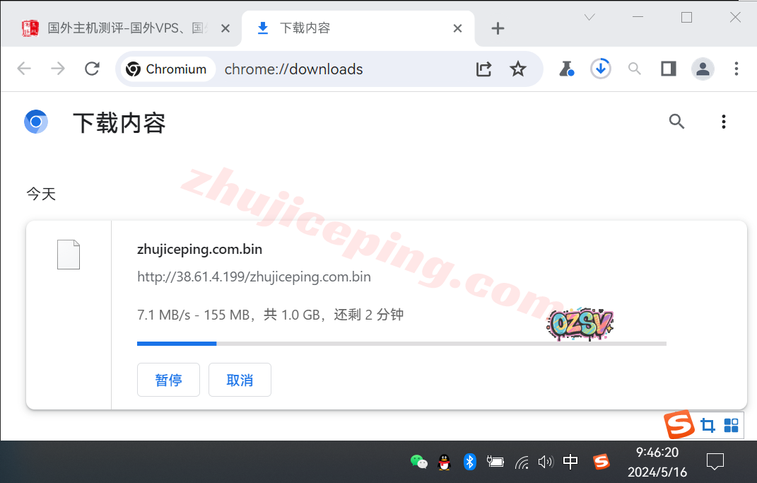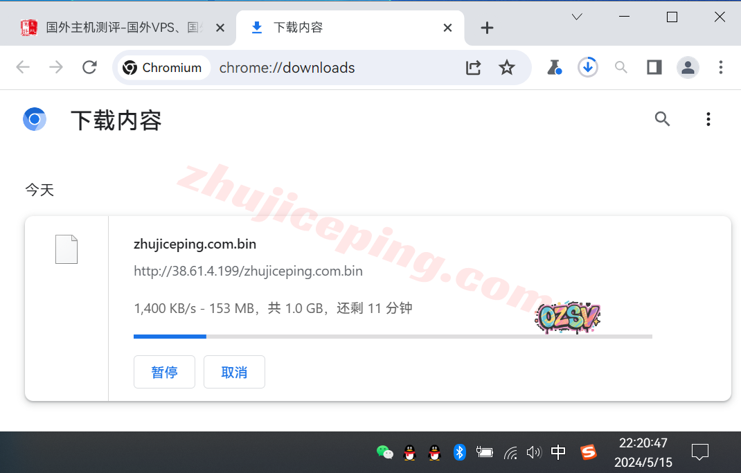 存放在测试VPS上的文件,广州联通家宽直接用浏览器下载,大致速度如下: