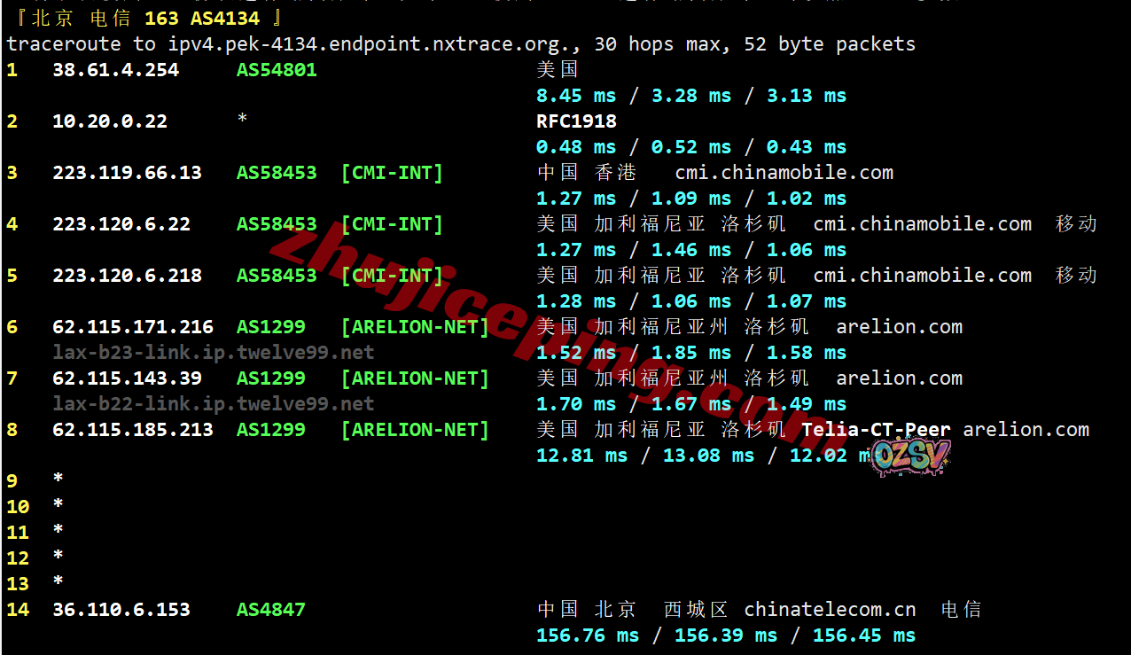电信回程:强制走的是移动CMI从洛杉矶直连回国