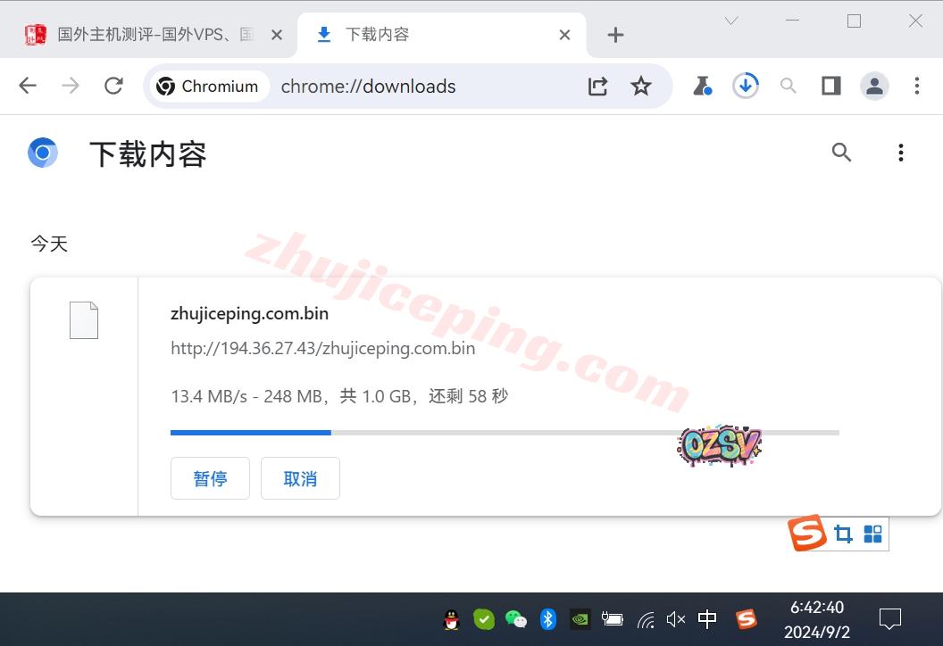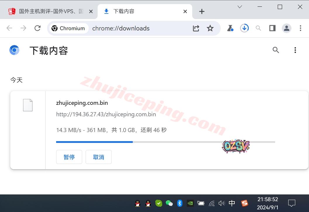 存放在测试VPS上的文件,广州联通家宽直接 用浏览器下载该文件,大致下载速度: