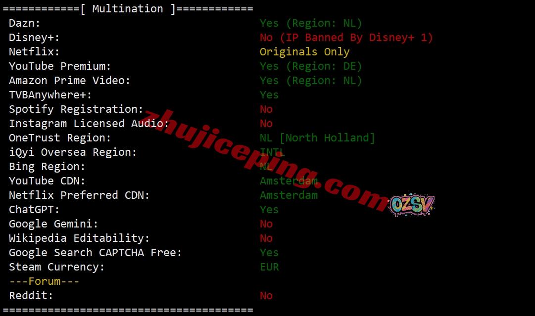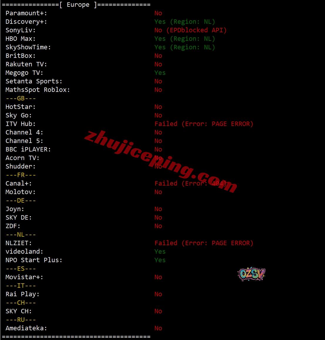 跨区域流媒体解锁测试: