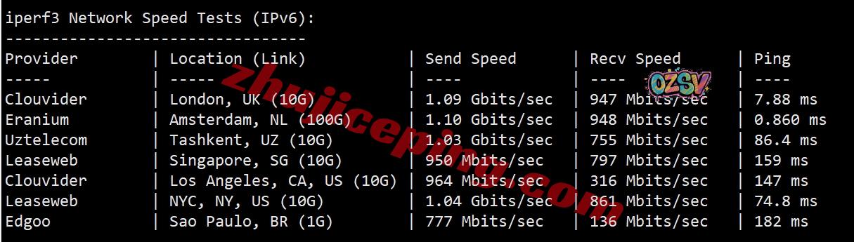 依旧还是iperf3,注意此次为IPv6环境: