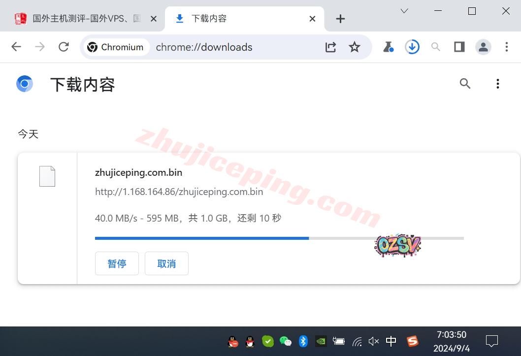 存放在测试VPS上的文件,广州联通家宽直接用浏览器下载该文件,大致的下载速度如下: