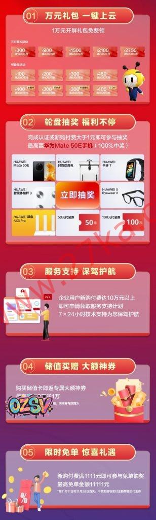 除了诸多产品和解决方案的优惠之外,华为云双11还为用户送上五重大礼,让用户不仅可以享受更多优惠,还可参加抽奖活动,惊喜多多。