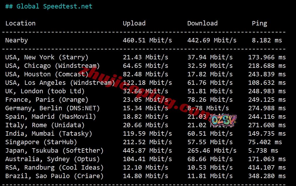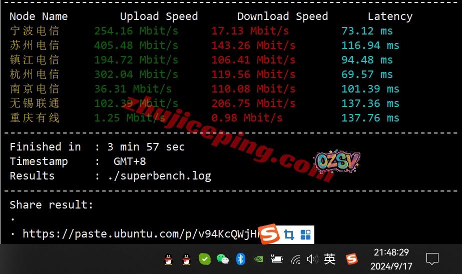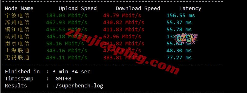 国内网络的带宽上下行测试,没有移动节点,移动方面的数据大家参考后面的下载测速吧: