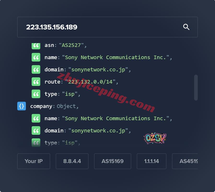 IPINFO的数据库显示:双ISP属性,ISP服务商为索尼网络