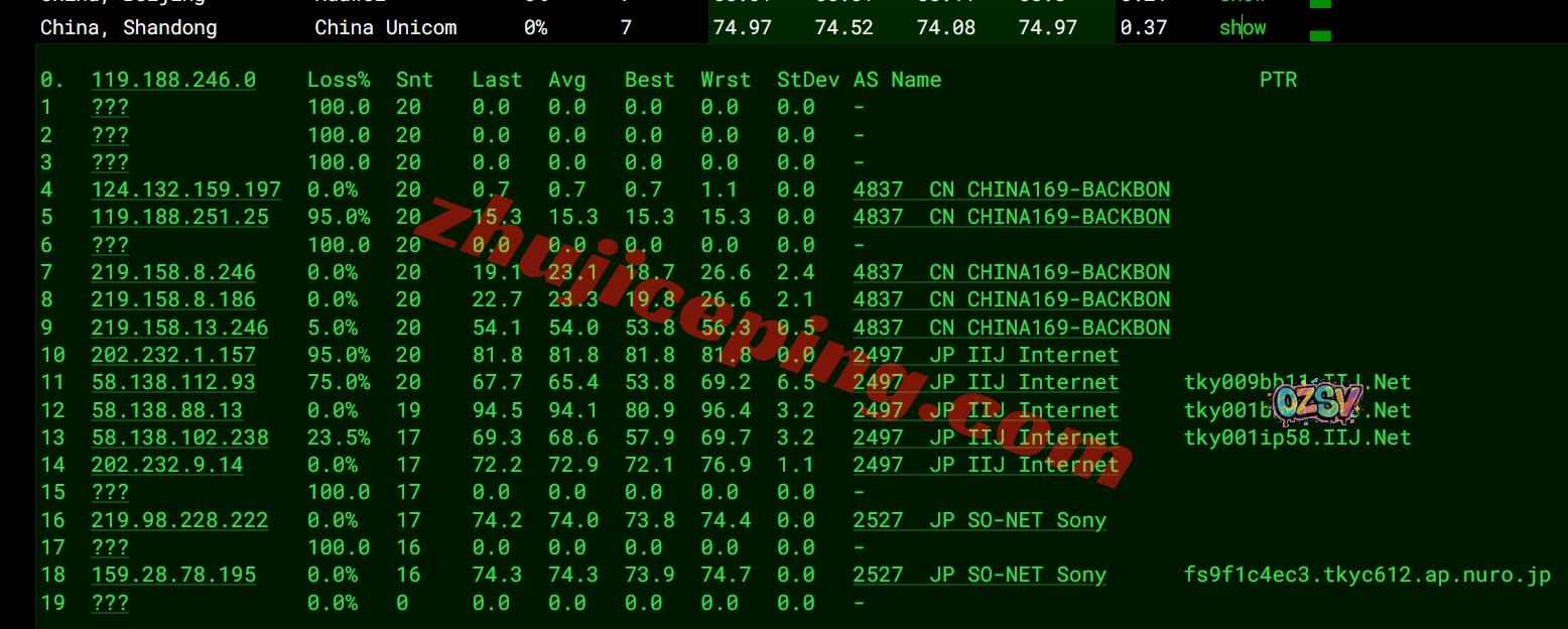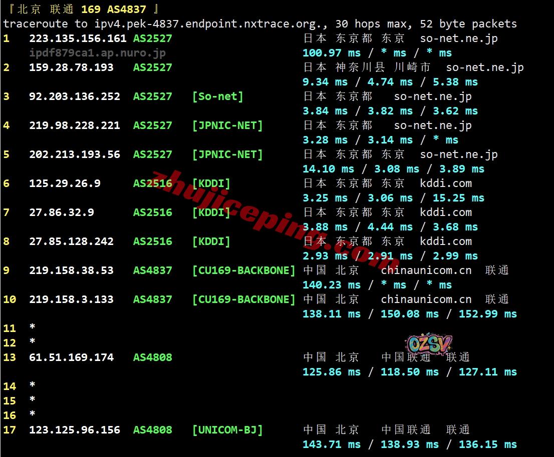 联通去程:联通骨干对接IIJ直接去日本东京,再接索尼网络到机房