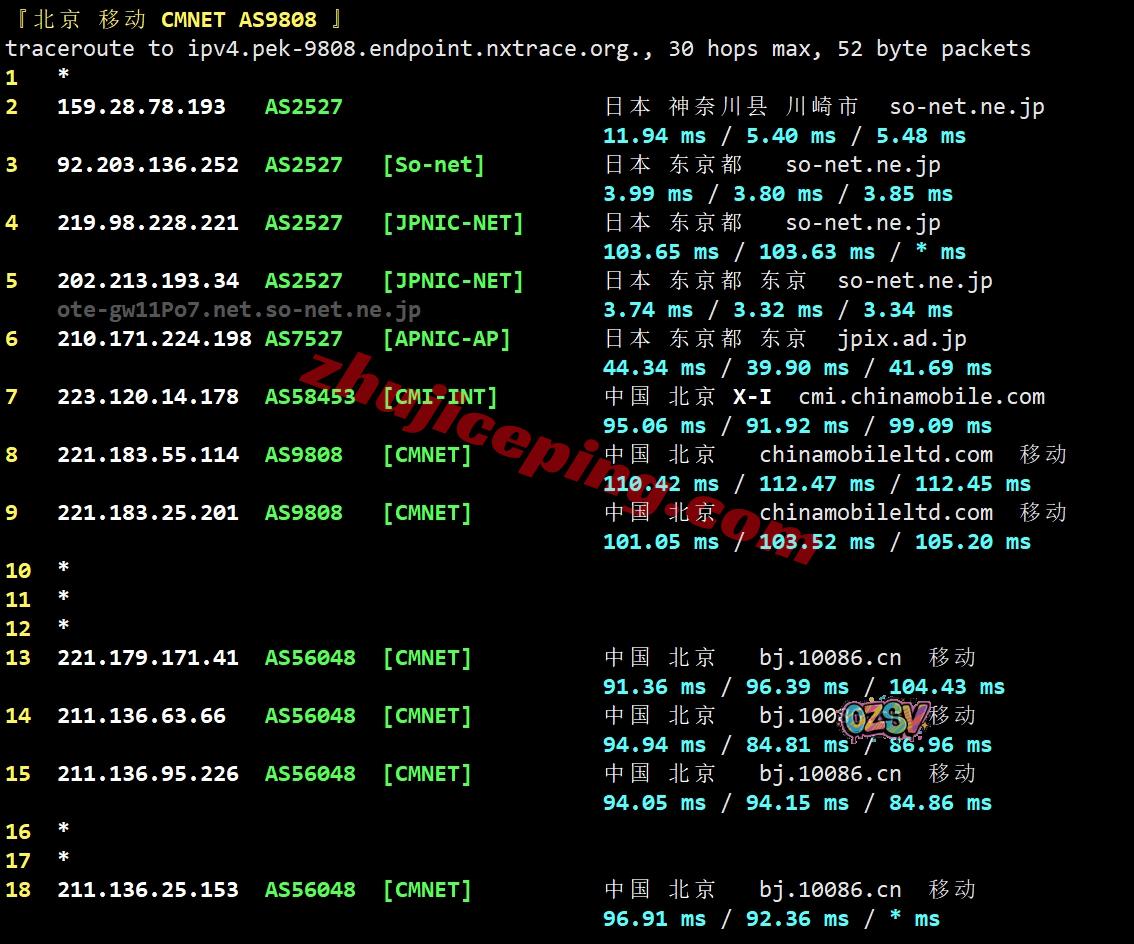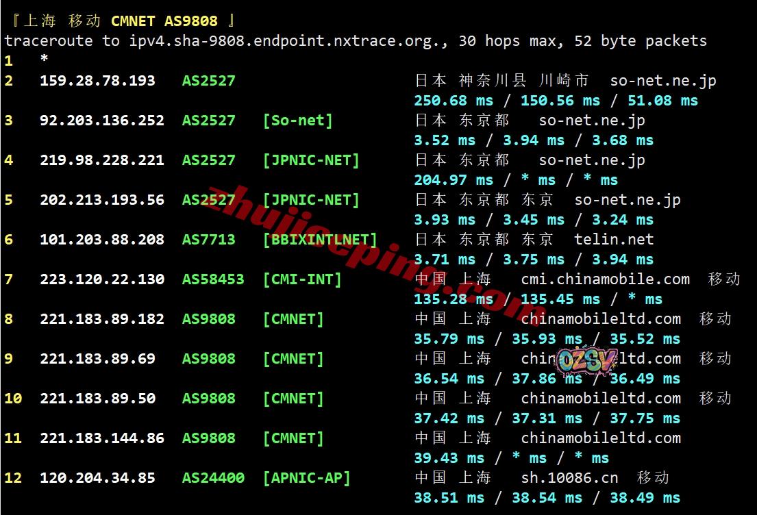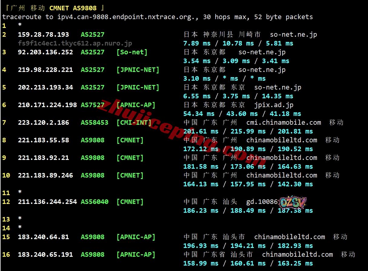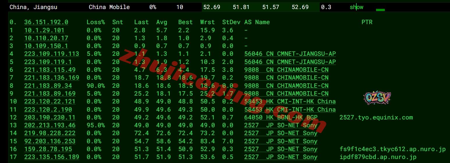 移动去程:移动CMI直连equninx东京机房,然后接索尼网络到机房