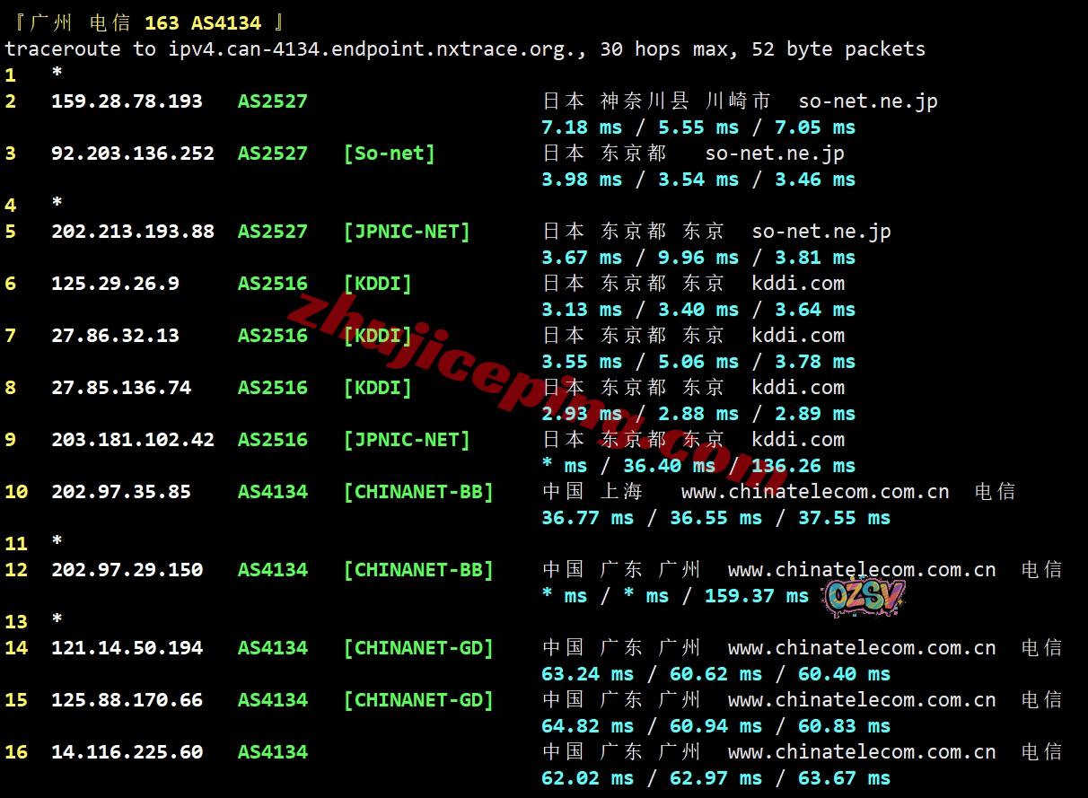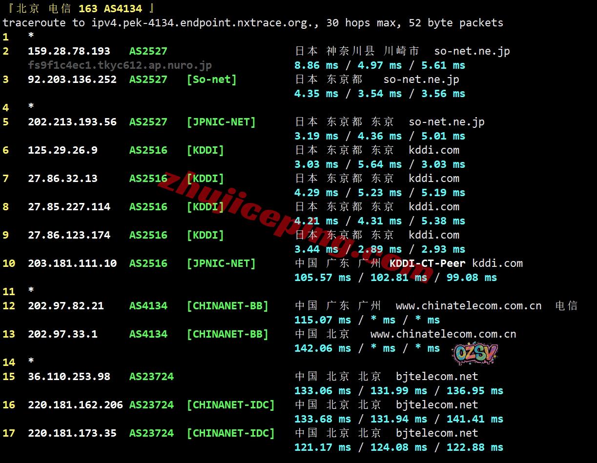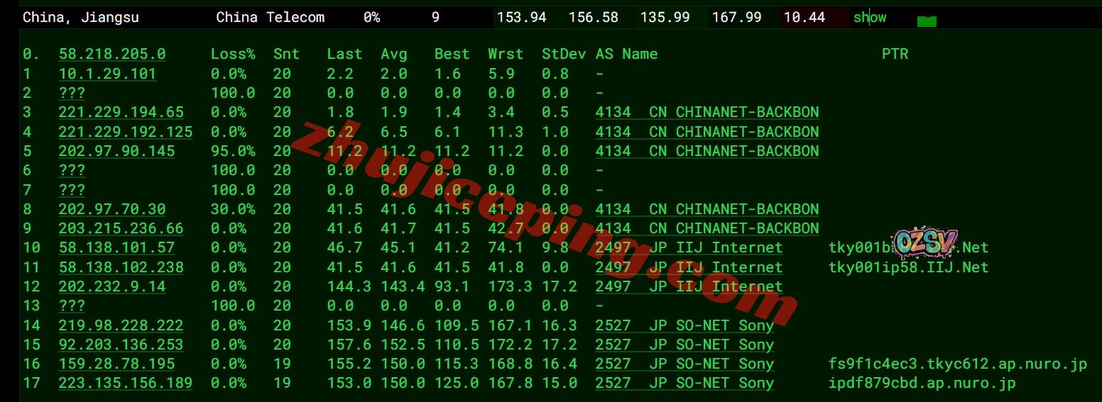 电信去程:电信骨干对接IIJ直接去日本东京,然后接索尼网络去机房