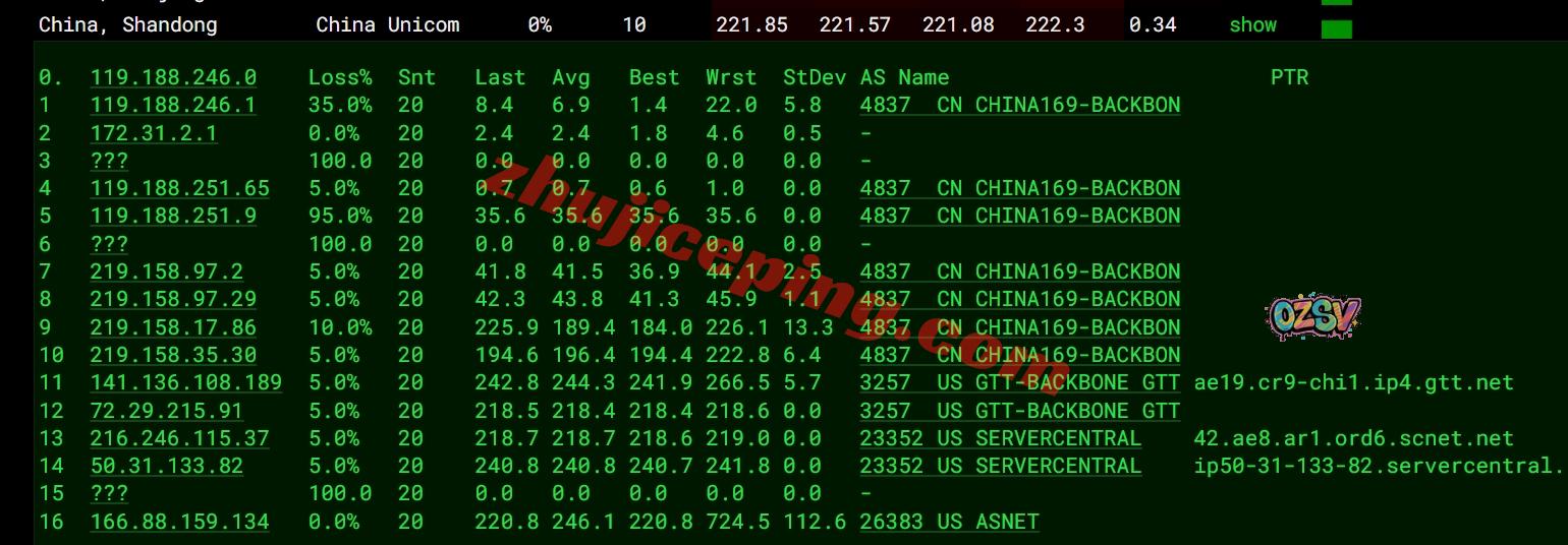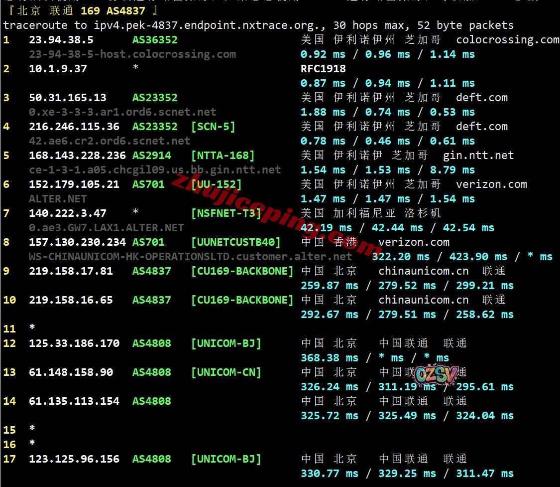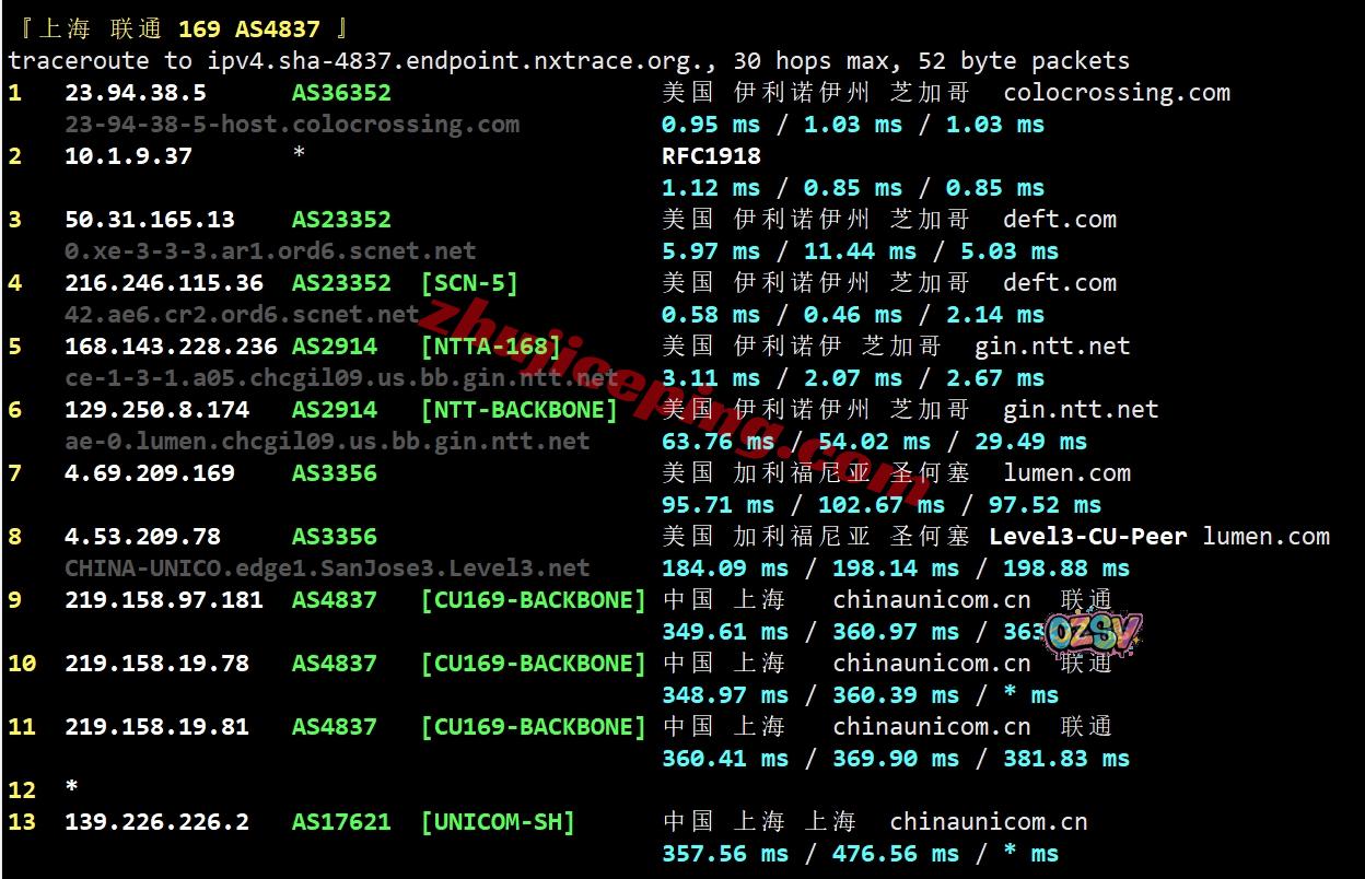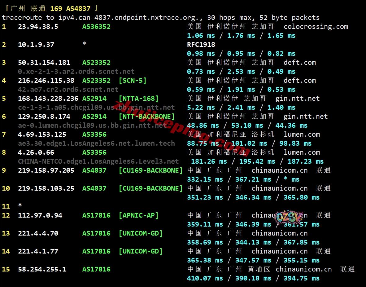 联通去程:直连联通美国洛杉矶节点,然后接GTT再去芝加哥