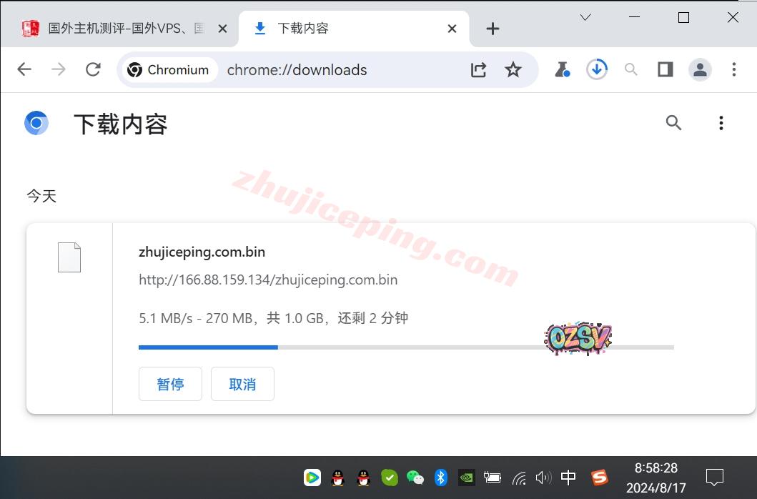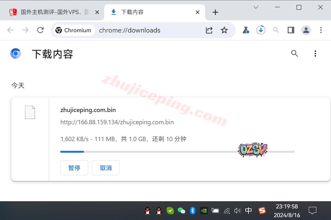 存放在测试VPS上的文件,广州联通家宽直接用浏览器下载,大致速度如下: