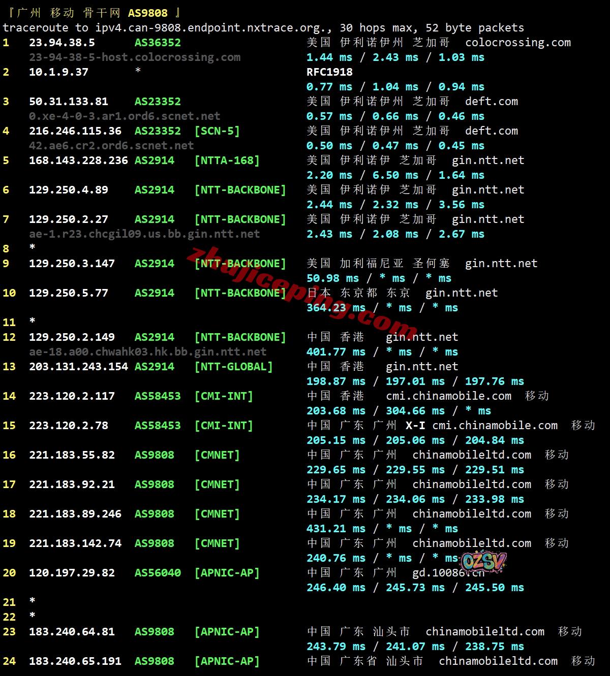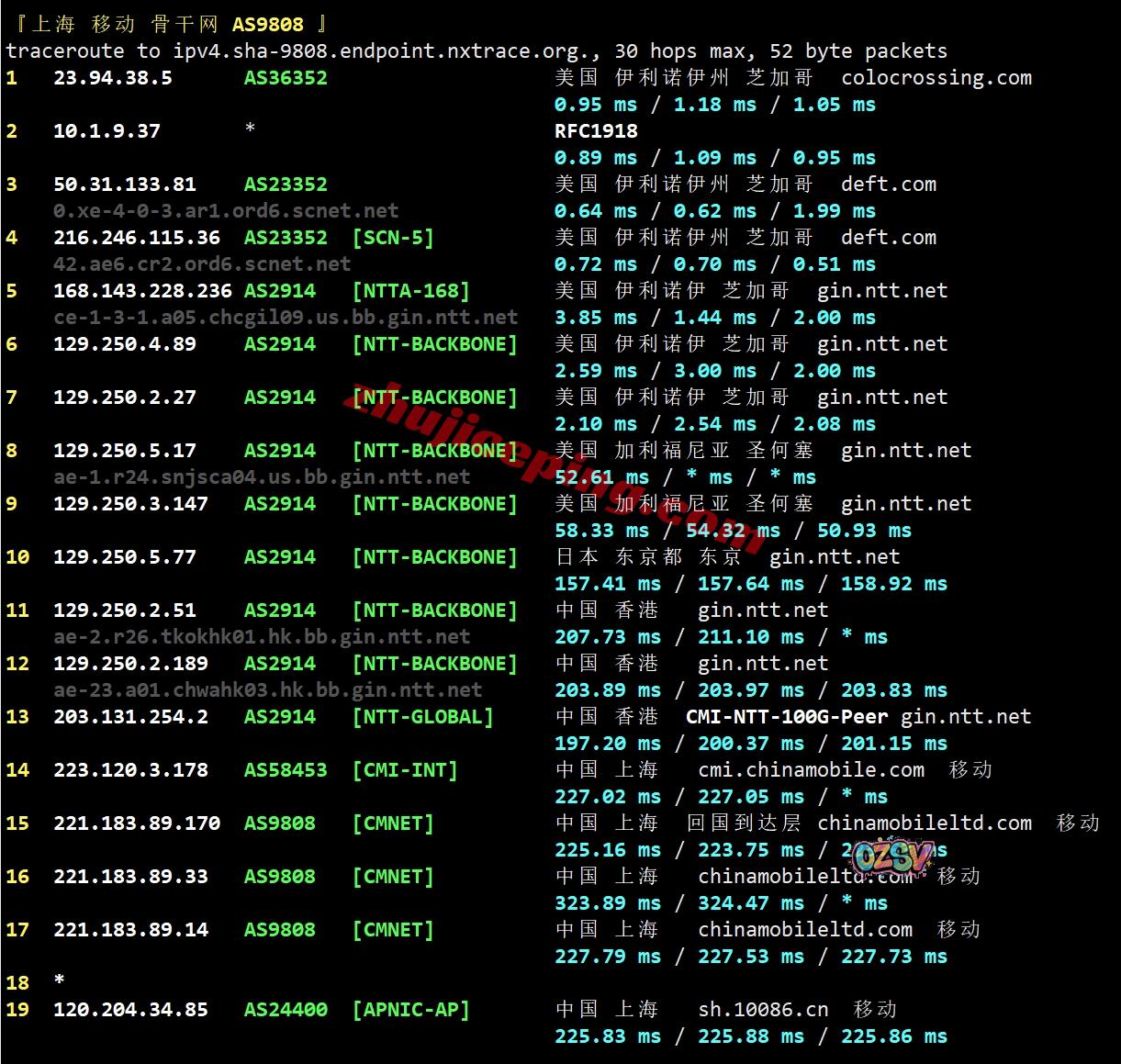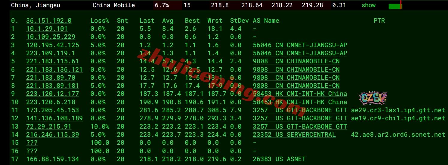 移动去程:直连移动美国洛杉矶节点,然后接GTT去芝加哥