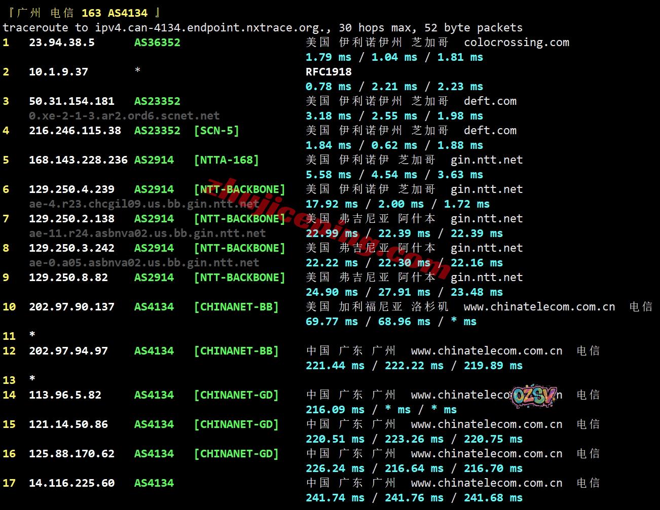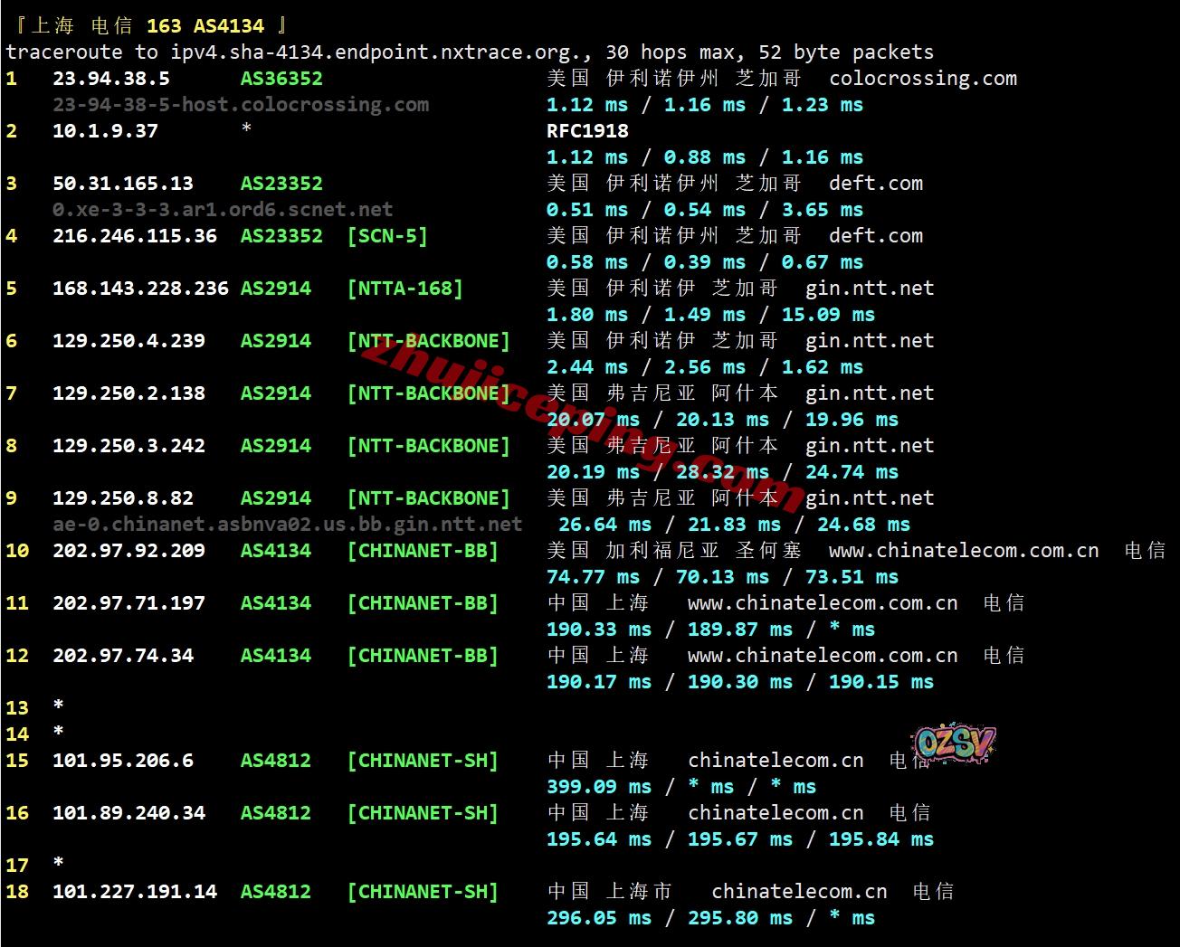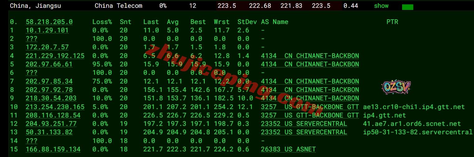 电信去程:直连电信美国圣何塞节点,然后接GTT去芝加哥