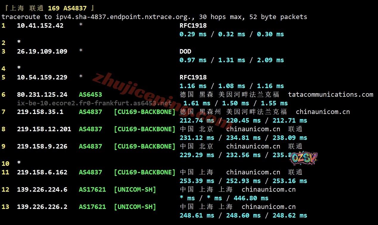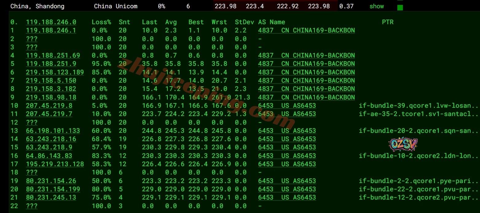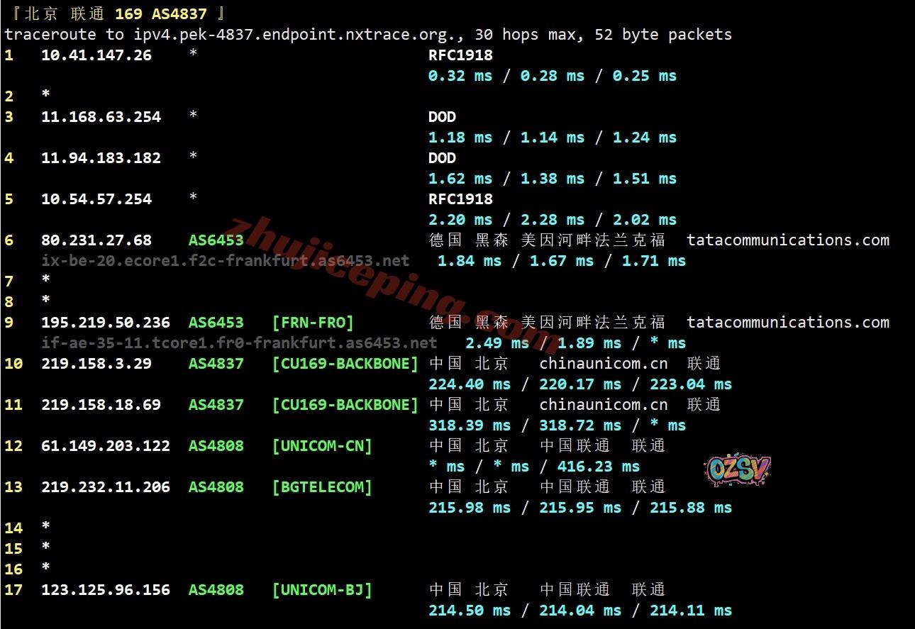 联通去程:直连联通美国洛杉矶节点然后接TATA去欧洲