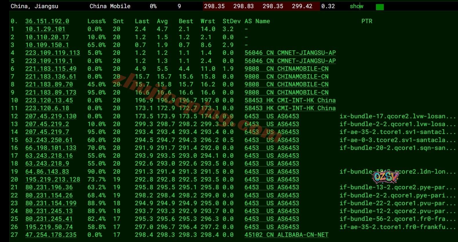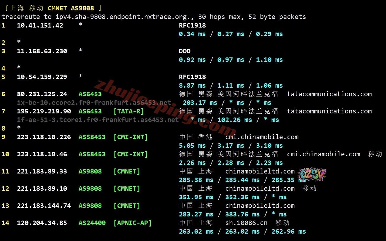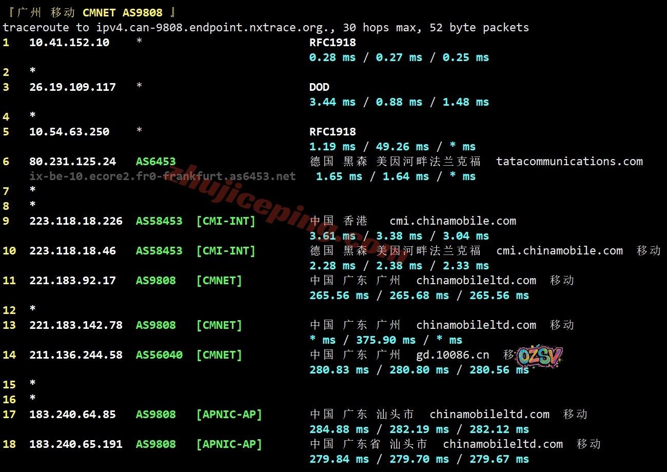 移动去程:直连移动美国洛杉矶节点然后接TATA去欧洲