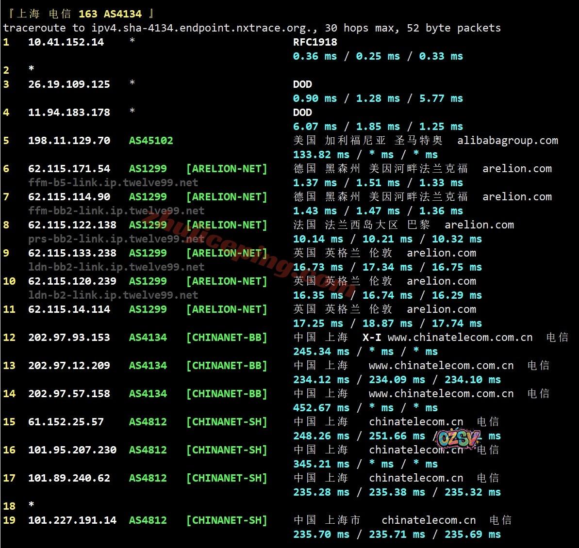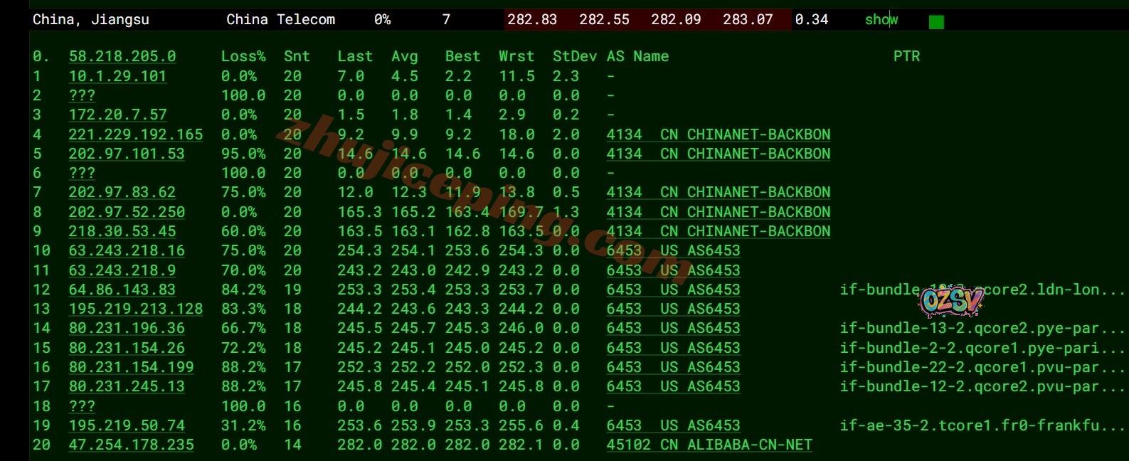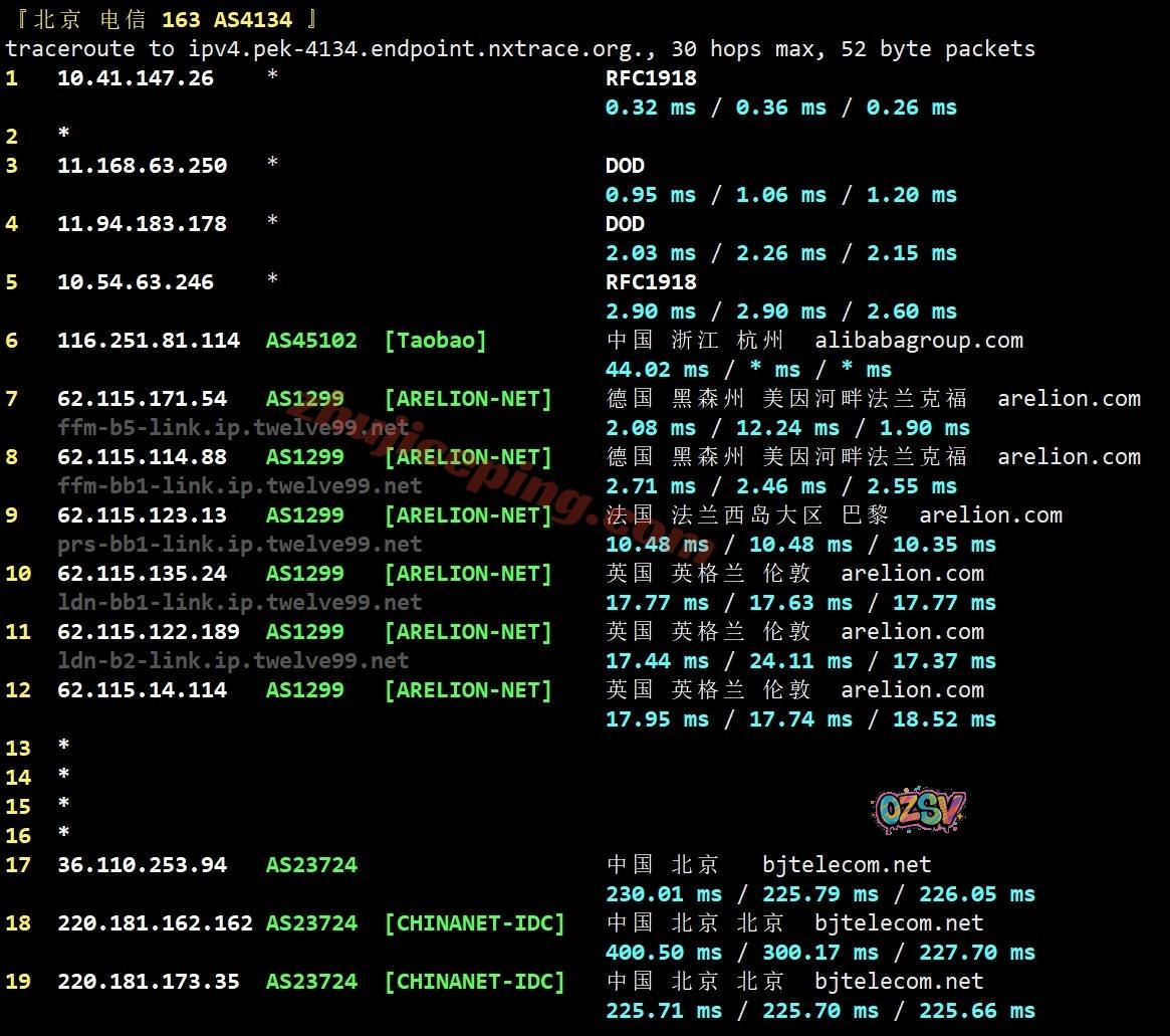 电信去程:直连电信美国圣何塞节点,然后走TATA去欧洲