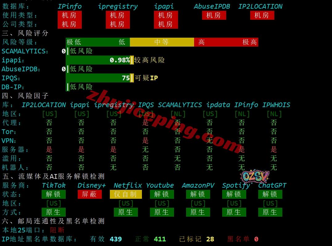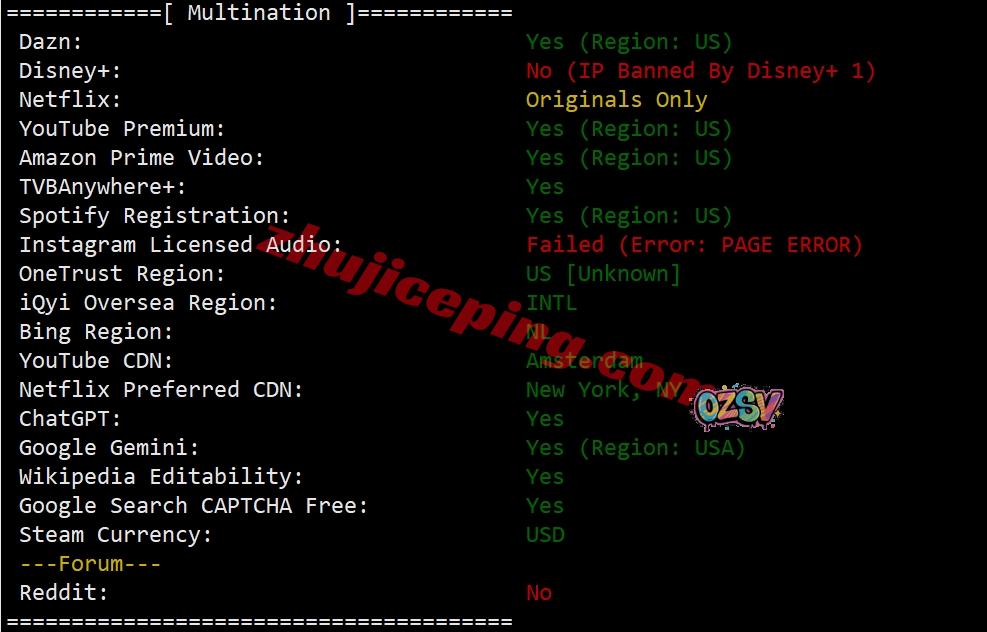 部分跨区域流媒体解锁测试: