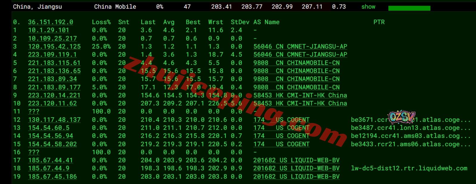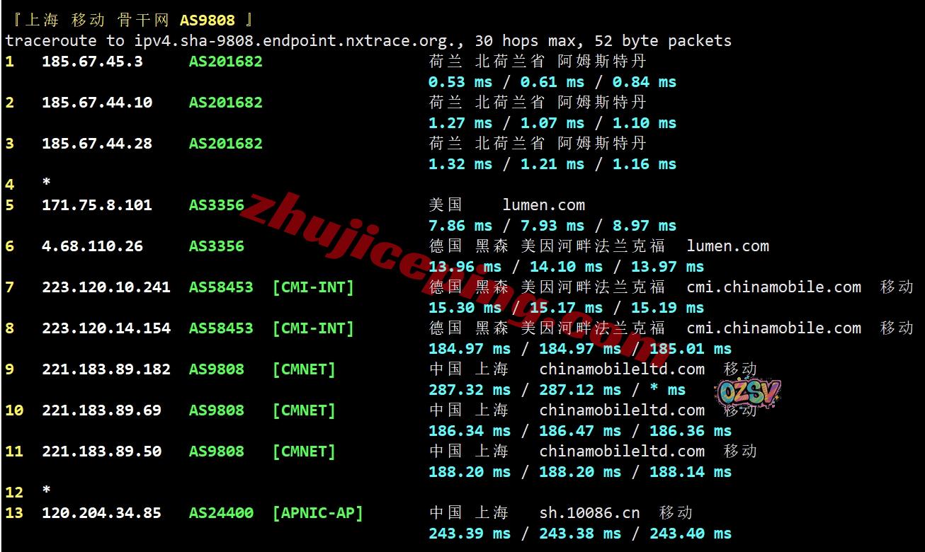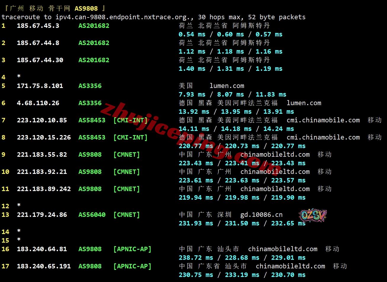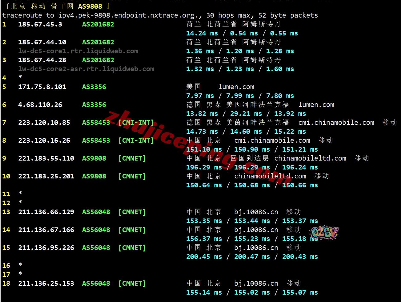 移动去程:直连移动英国伦敦节点,然后接cogent去荷兰
