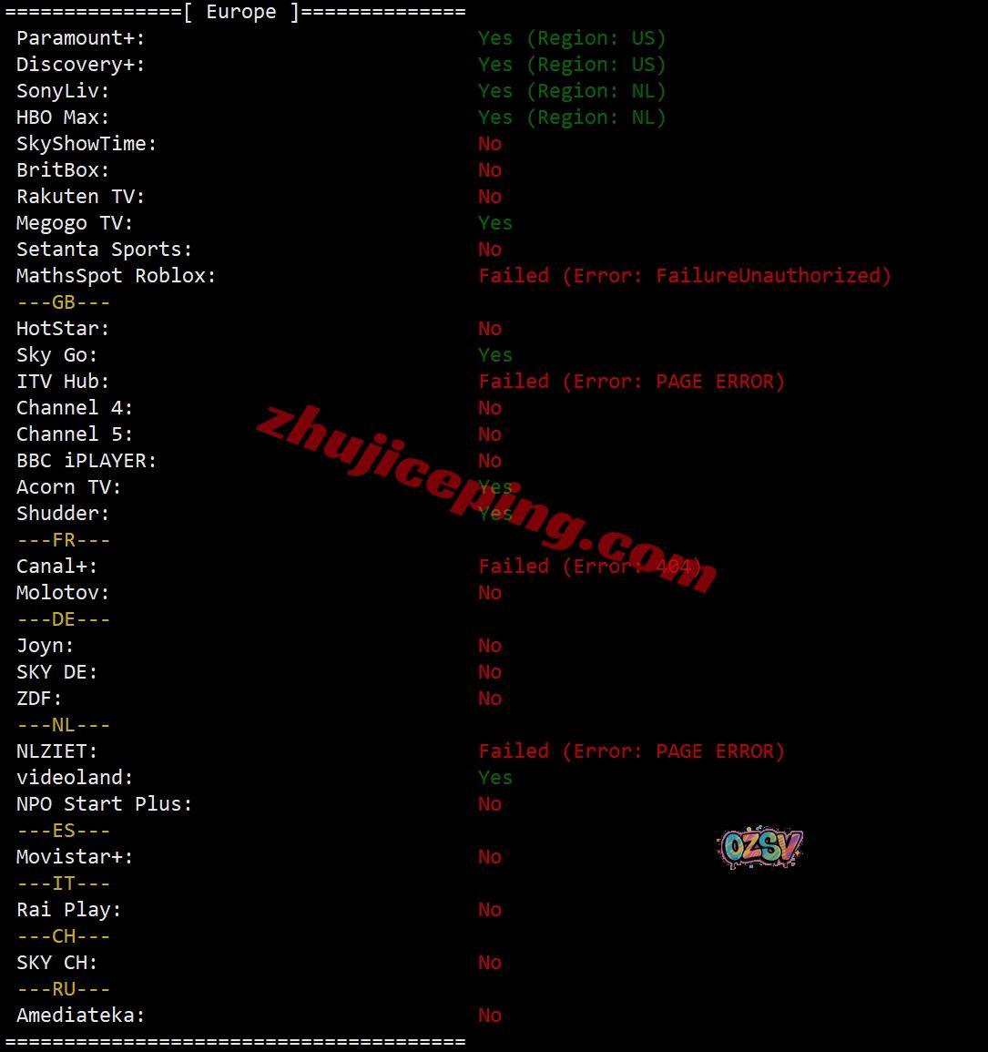 部分欧洲流媒体解锁测试: