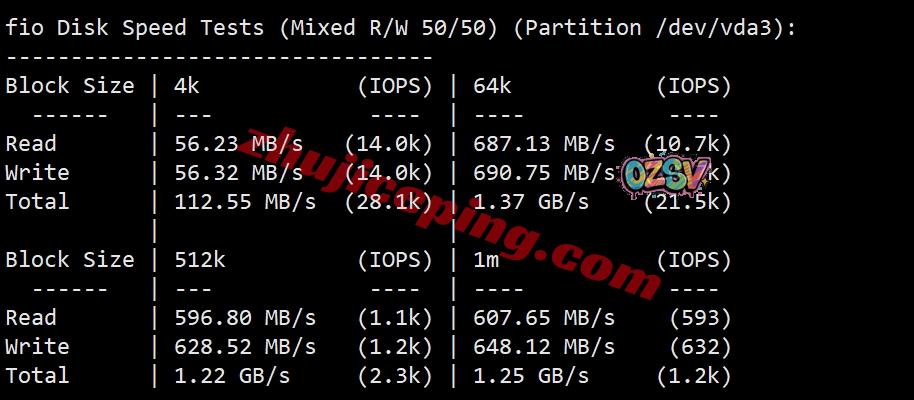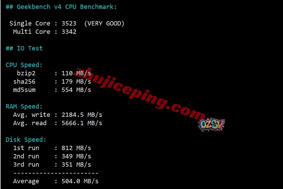 VPS性能测试,部分数据如下: